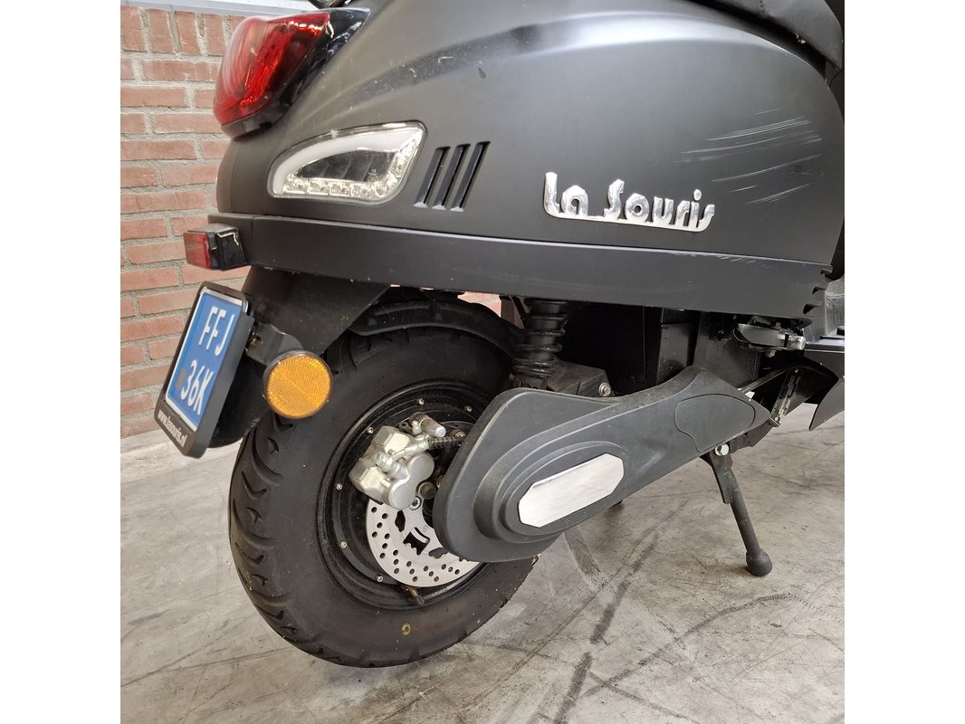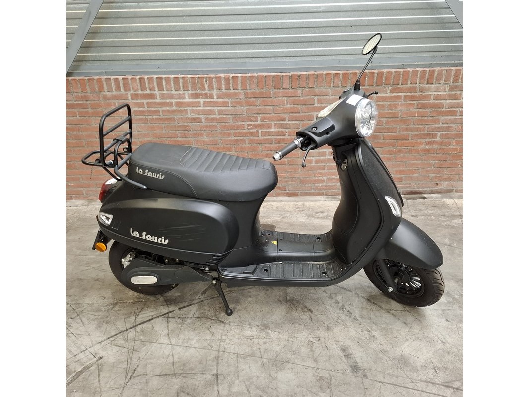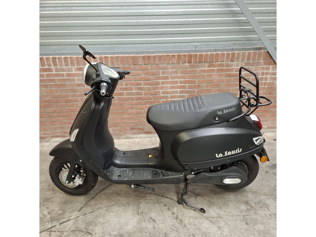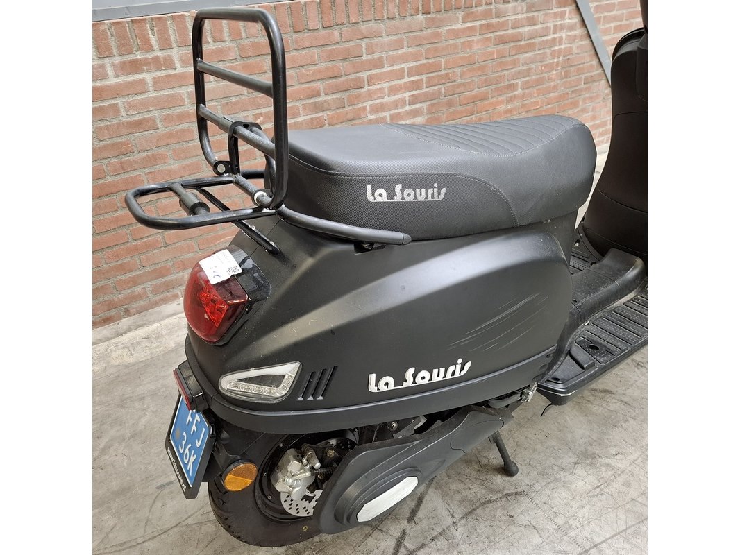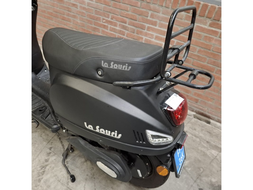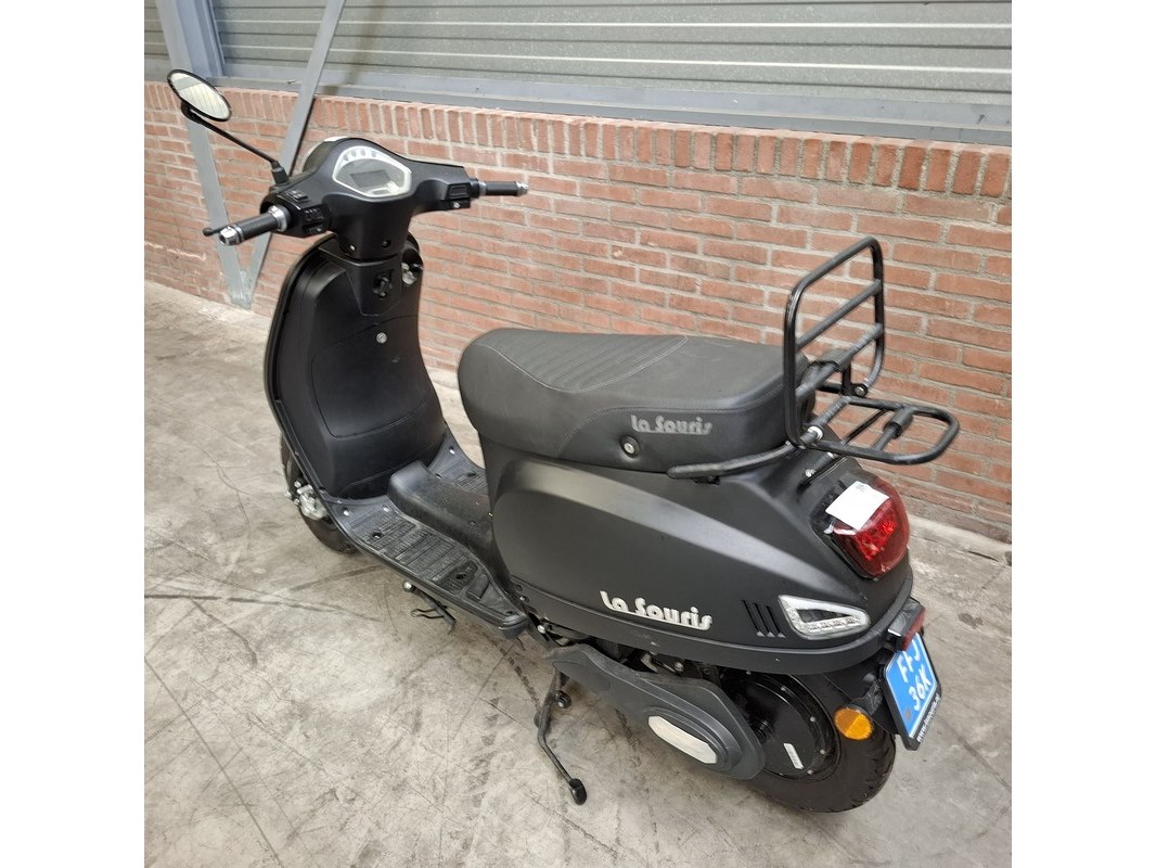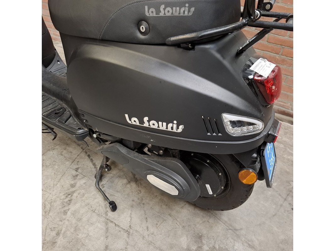 Merk: La Souris Product: E-Scooter Conditie: gebruikt Specificaties: Kenteken: FFJ-36-K Bouwjaar: Onbekend Eerste toelating nationaal: 18-12-2020 Brandstof: electriciteit Afgelezen tellerstand: 536km Aantal sleutels: 1 Start: nvt Opties e.d. Bagagerek Waargenomen gebreken: Gebruikssporen rondom. Rechter spiegel ontbreekt
