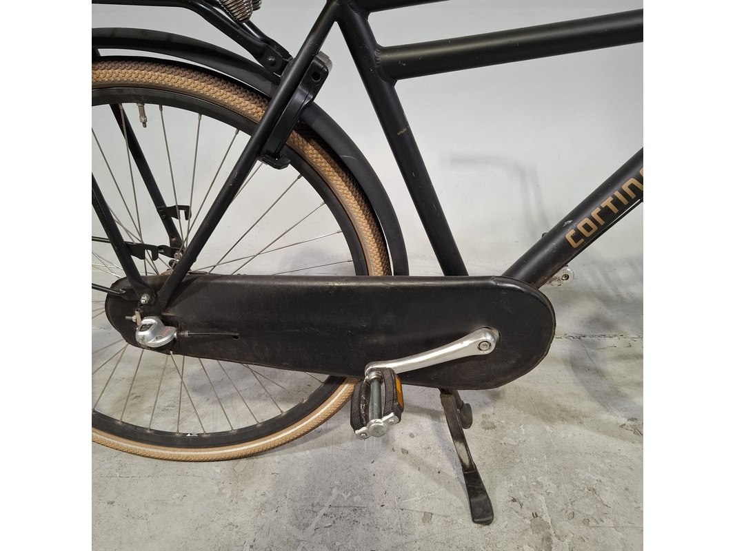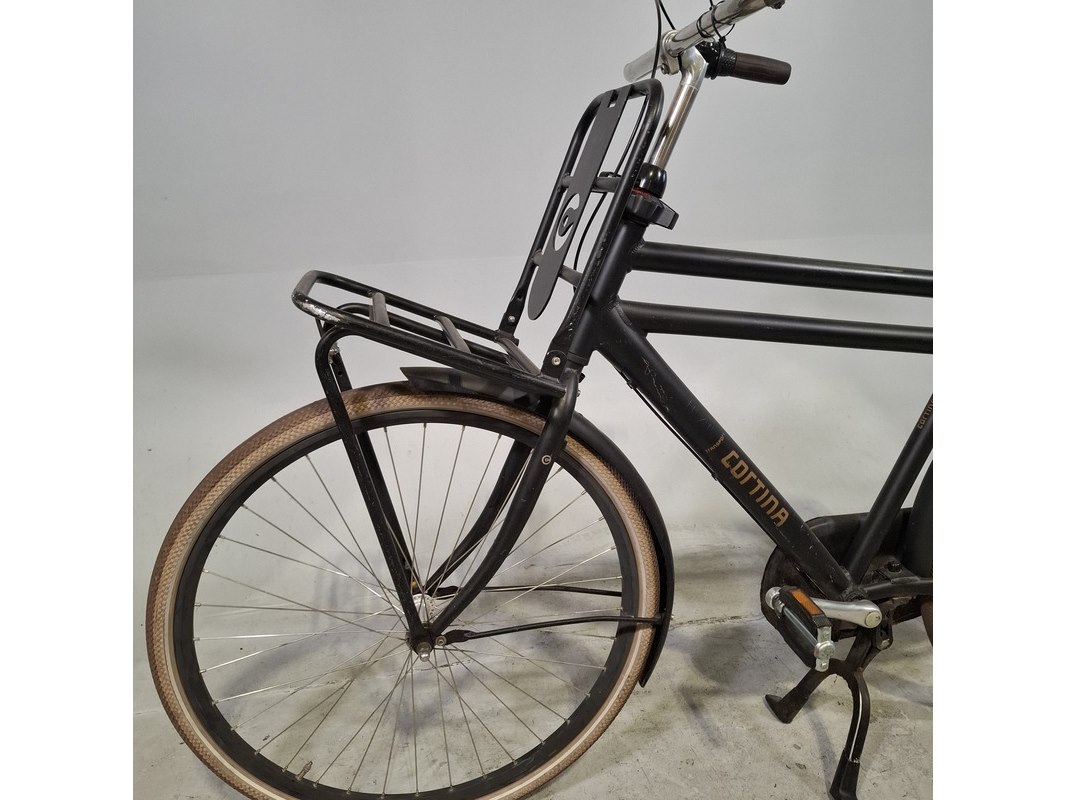 Merk: Cortina Product: Herenfiets Afmeting: Framemaat ca. 56 cm. Conditie: gebruikt Specificaties: 3 versnellingen Achterspatbord afgebroken Zadel gescheurd