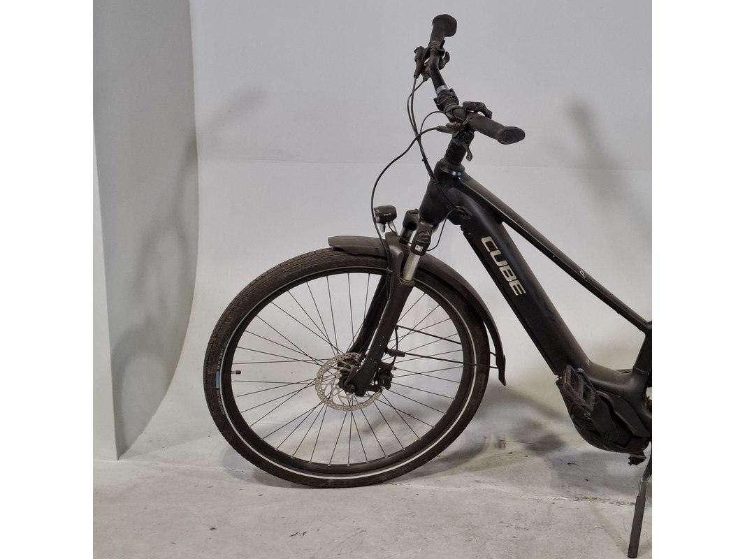 Merk: Cube Product: Elektrische damesfiets Afmeting: Framemaat ca. 49 cm Conditie: gebruikt Specificaties: Geveerde voorvork en zadelpen 9 versnellingen Schijfremmen voor en achter Inclusief accu en fiets bediening Afdekplaat accu ontbreekt Bosch PerformanceLine middenmotor Exclusief acculader