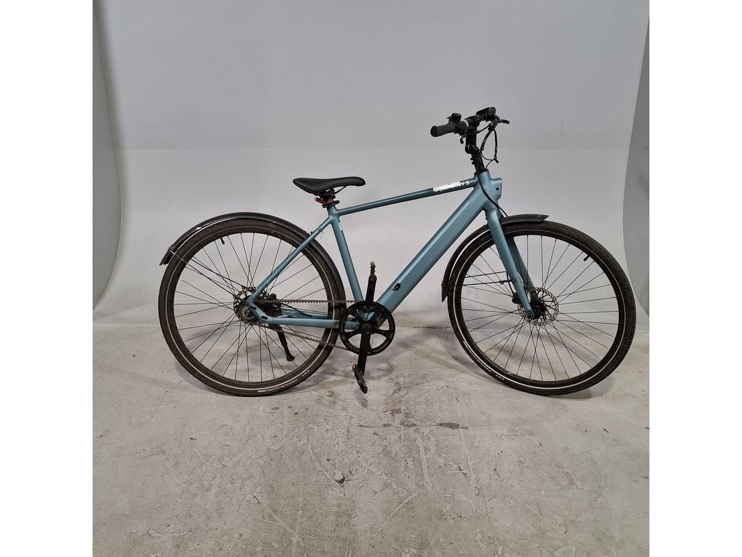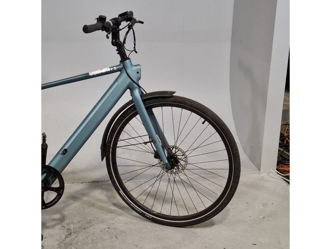 Merk: Tenways Product: Elektrische herenfiets Afmeting: Framemaat ca. 50 cm Conditie: gebruikt Specificaties: Schijfrem voor en achter Riem aangedreven Aanwezigheid accu onbekend, accu bak staat op slot Exclusief sleutel en acculader.