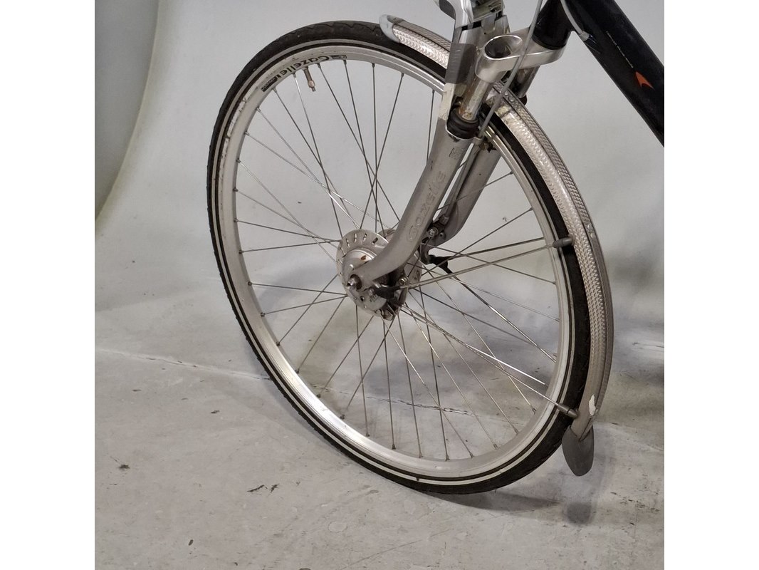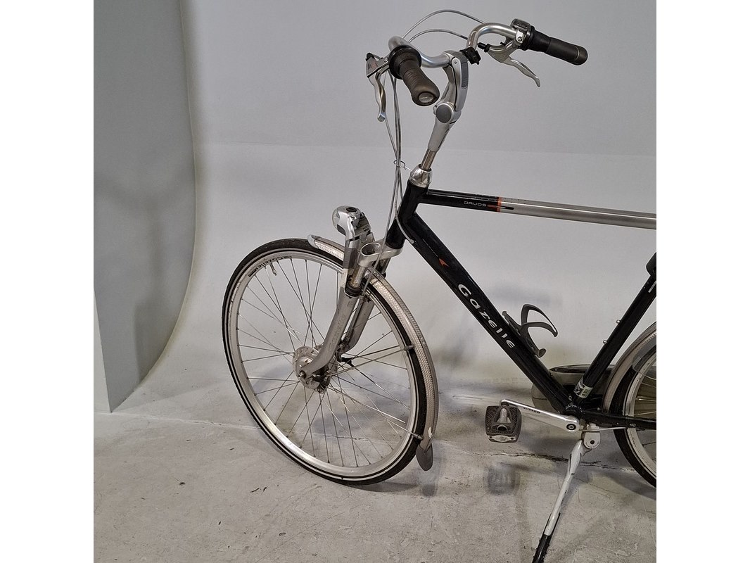 Merk: Gazelle Product: Herenfiets Afmeting: Framemaat ca. 61 cm Conditie: gebruikt Specificaties: 8 versnellingen Geveerde voorvork en zadelpen