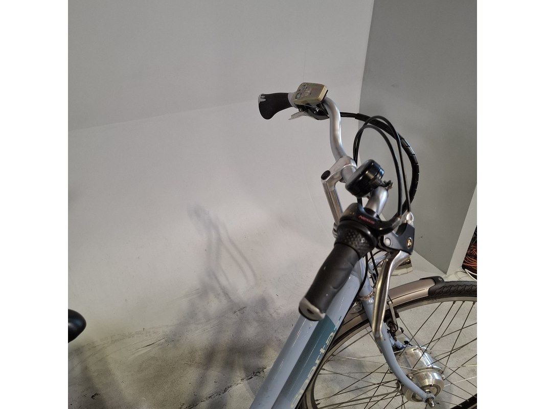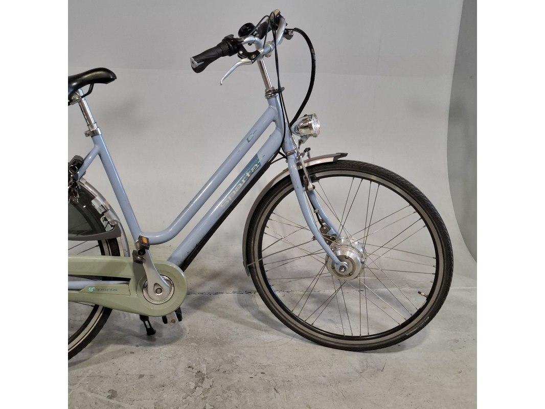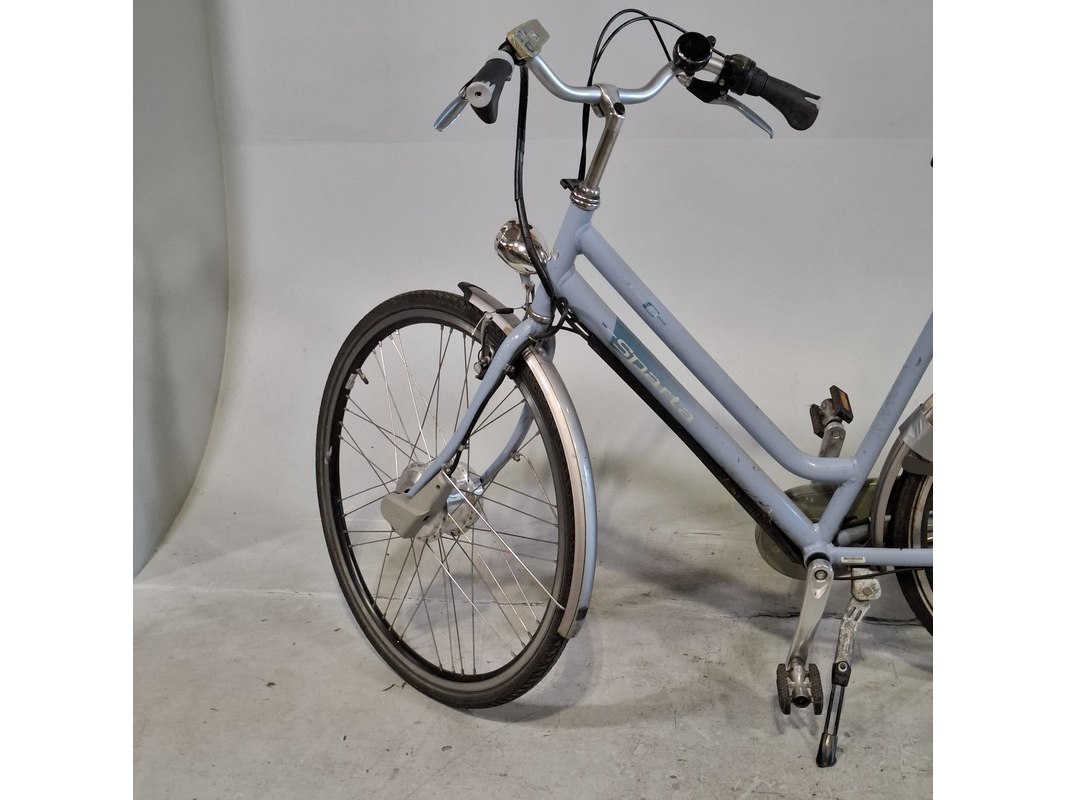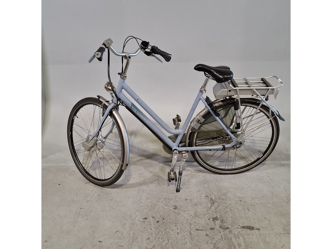 Merk: Sparta Product: Elektrische damesfiets Afmeting: Framemaat ca. 57 cm Conditie: gebruikt Specificaties: 3 versnellingen Met voorwielmotor Fiets bediening defect Accu is leeg