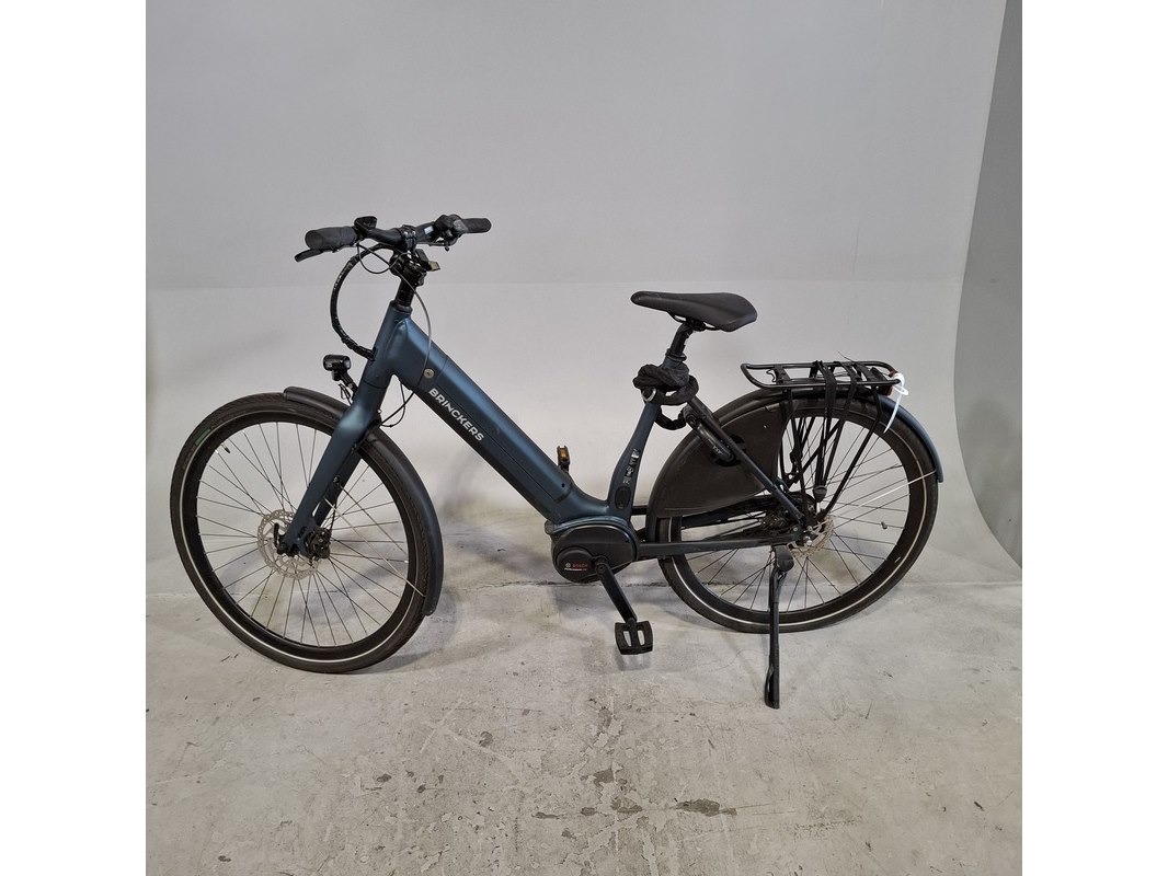 Merk: Brinckers Product: Elektrische damesfiets Afmeting: Framemaat ca. 56 cm Specificaties: Nuvinci versnelling systeem Sleutels ontbreken: Fiets staat op slot, aanwezigheid aaccu onbekend. Accu bak vergrendeld. Exclusief fietscomputer en acculader.
