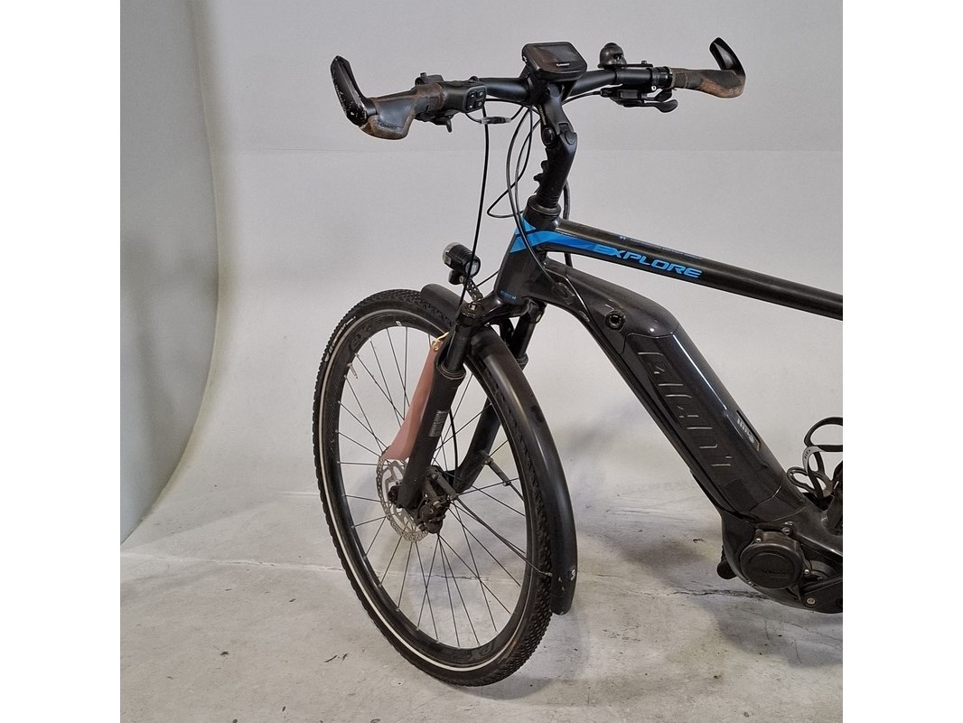 Merk: Giant Product: Elektrische herenfiets Afmeting: Framemaat ca. 53 cm Specificaties: Geveerde voorvork 9 versnellingen schijfremmen voor en achter Inclusief fietscomputer Aanwezigheid accu onbekend: accu bak staat op slot Exclusief acculader en (accu) sleutel