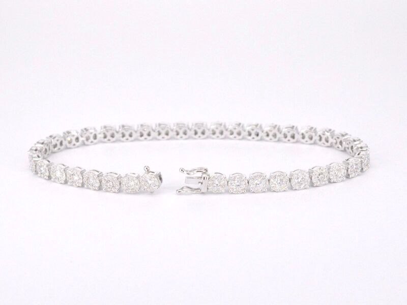 Product: Witgouden tennisarmband met 5.00 carat diamanten Specificaties: Diamant: natuurlijk Slijpvorm: Briljant geslepen Gewicht (carat): 5.00 carat Kleur: F-G Zuiverheid: VS Slijpkwaliteit: Excellent Juweel: Armband Gewicht: 13 gram Afmetingen/lengte: 17-18 cm Materiaal: 18K goud (750) Conditie: Nieuw Verpakking: Luxe sieradendoos Toelichting: De kwaliteit is overgenomen van het rapport behorend bij item. De waardebepaling is een beoordeling van een gecertificeerde diamantair, gebaseerd op consumentenprijzen. Consumentenprijs: € 24.098,-