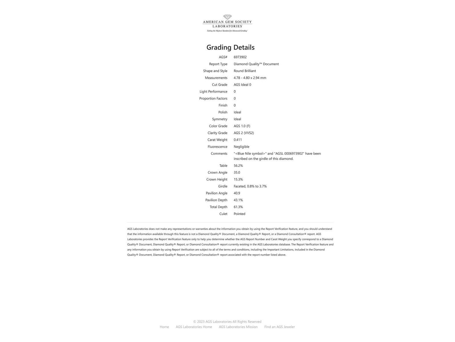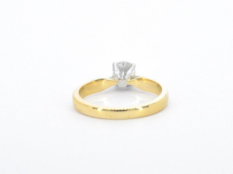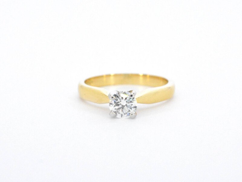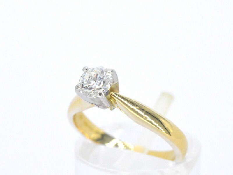 Product: Gouden solitair ring Specificaties: Diamant: Natuurlijk Aantal: 1 stuk Slijpvorm: Briljant geslepen Gewicht (carat): 0.41 carat Kleur: F Zuiverheid: VVS2 Slijpkwaliteit: Excellent Certificaat: AGS Certificaat nummer: 6973902 Juweel: Ring Gewicht: 3.1 gram Ringmaat (op maat gemaakt*): 48 (15.25 mm) Materiaal: 18k goud (750) Conditie: Zo goed als nieuw Verpakking: Luxe sieradendoos Toelichting: De kwaliteit is overgenomen van het rapport behorend bij item. De waardebepaling is een beoordeling van een gecertificeerde diamantair, gebaseerd op consumentenprijzen. Consumentenprijs: € 5.550,-