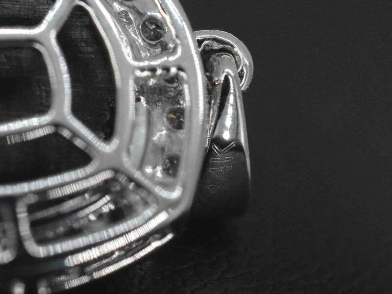 Product: Witgouden hanger met diamanten en een zwarte diamant van 4.80 carat Specificaties: Diamant: Natuurlijk Aantal: 1 stuk Slijpvorm: Gefacetteerd Gewicht (carat): 4.80 carat Kleur: Zwart (enhanced) Zuiverheid: Opaak Slijpkwaliteit: Zeer mooi Diamant (secundair): Witte diamant Aantal diamanten: 23 stuks Slijpvorm: Briljant geslepen Gewicht (carat): 0.40 carat Kleur: F-G Zuiverheid: VS Slijpkwaliteit: Very good Juweel: Hanger (excl. ketting) Gewicht: 2.5 gram Afmetingen/lengte: 21 x 14 mm Materiaal: 14k goud (585) Conditie: Nieuw Verpakking: Luxe sieradendoos Toelichting: De kwaliteit is overgenomen van het rapport behorend bij item. De waardebepaling is een beoordeling van een gecertificeerde diamantair, gebaseerd op consumentenprijzen. Extra informatie: Aan de oppervlakte van deze diamanten zitten nog natuurlijke kenmerken van ruwe diamant, dit kan voor een leek lijken op beschadigingen Consumentenprijs: € 3.960,-