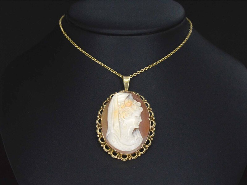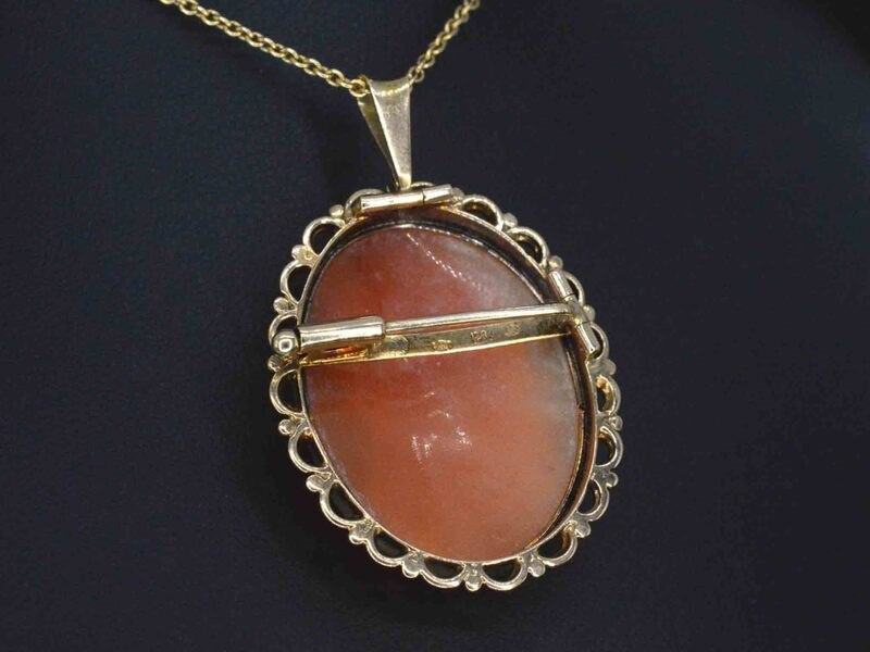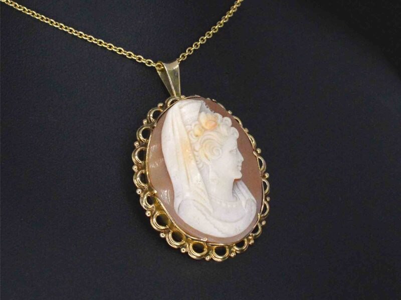 Product: Gouden hanger met camee Specificaties: Edelsteen: Camee Kleur: Wit met beige Slijpkwaliteit: Zeer hoge kwaliteit hand gravure Juweel: Hanger (excl. ketting) Gewicht: 8.9 gram Afmetingen/lengte: 44 x 29 mm Materiaal: 14k goud (585) Conditie: Vintage Verpakking: Luxe sieradendoos Toelichting: De kwaliteit is overgenomen van het rapport behorend bij item. De waardebepaling is een beoordeling van een gecertificeerde diamantair, gebaseerd op consumentenprijzen. Consumentenprijs: € 3.150,-