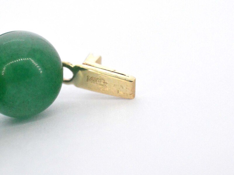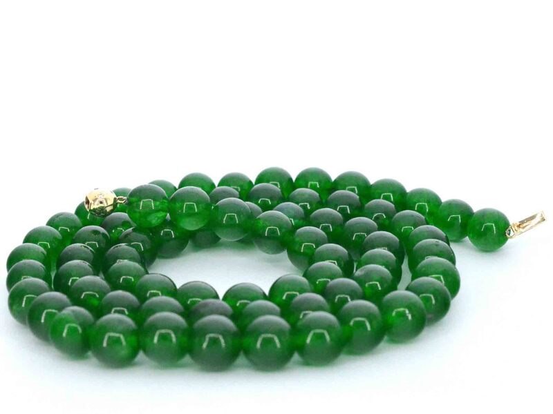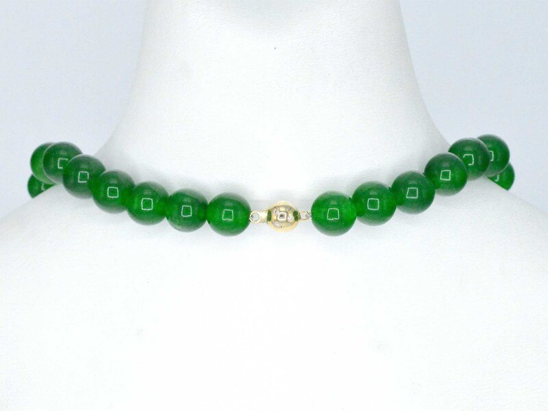 Product: Halsketting met jade edelsteen en een gouden sluiting met diamant Specificaties: Diamant: Natuurlijk Aantal: 6 stuks Slijpvorm: Briljant geslepen Gewicht (carat): 0.10 carat Kleur: F-G Zuiverheid: VS Slijpkwaliteit: Heel goed Edelsteen: Jade Slijpvorm: Rond Kleur: Intense groen Afmetingen: 10 mm Kwaliteit: Mooi glanzend Juweel: Collier Gewicht: ca. 80 gram Afmetingen/lengte: ca. 70 cm Materiaal: 14k goud (585) Conditie: Nieuw Verpakking: Luxe sieradendoos Toelichting: De kwaliteit is overgenomen van het rapport behorend bij item. De waardebepaling is een beoordeling van een gecertificeerde diamantair, gebaseerd op consumentenprijzen. Extra informatie: Sluiting: 14K goud (585) met diamanten Consumentenprijs: € 1.760,-