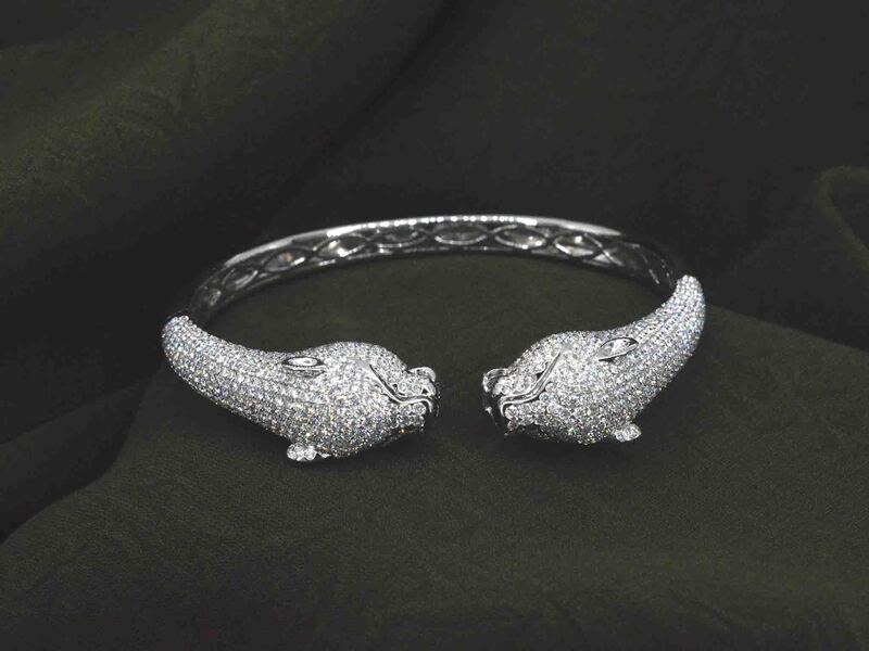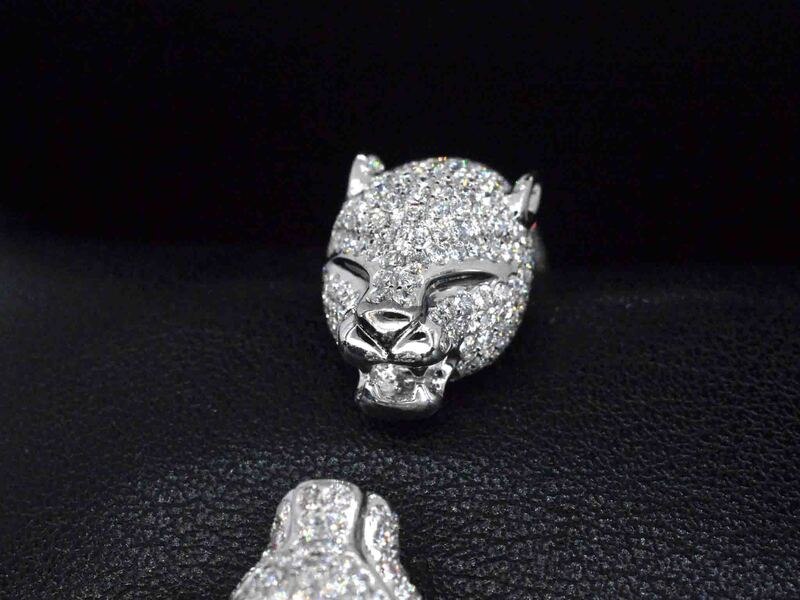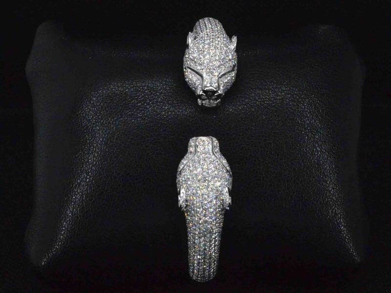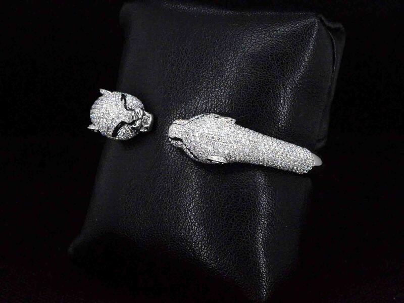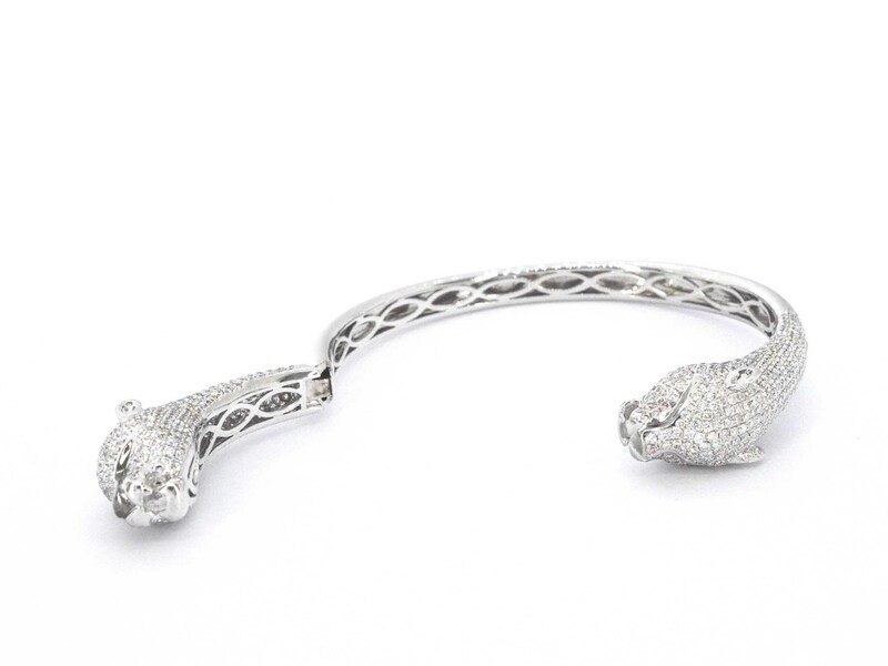 Product: Witgouden Panthere armband vol gezet met hoge kwaliteit natuurlijke diamanten Specificaties: Diamant: Natuurlijk Slijpvorm: Briljant geslepen Gewicht (carat): 6.00 carat Kleur: F Zuiverheid: VVS Slijpkwaliteit: Zeer mooi Juweel: Armband Gewicht: 31 gram Afmetingen/lengte: 58 x 45 mm binnenmaat Materiaal: 18k goud (750) Conditie: Zo goed als nieuw Verpakking: Luxe sieradendoos Toelichting: De kwaliteit is overgenomen van het rapport behorend bij item. De waardebepaling is een beoordeling van een gecertificeerde diamantair, gebaseerd op consumentenprijzen. Consumentenprijs: € 36.750,-
