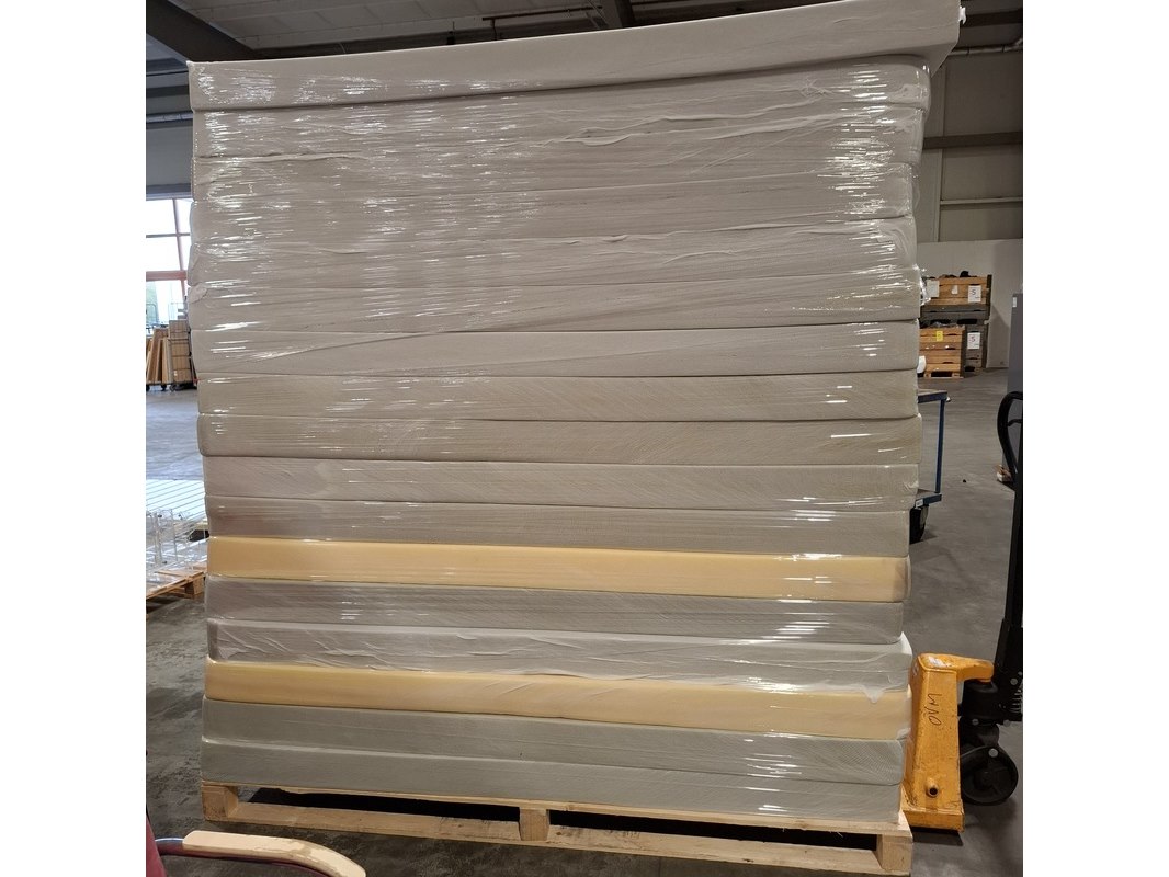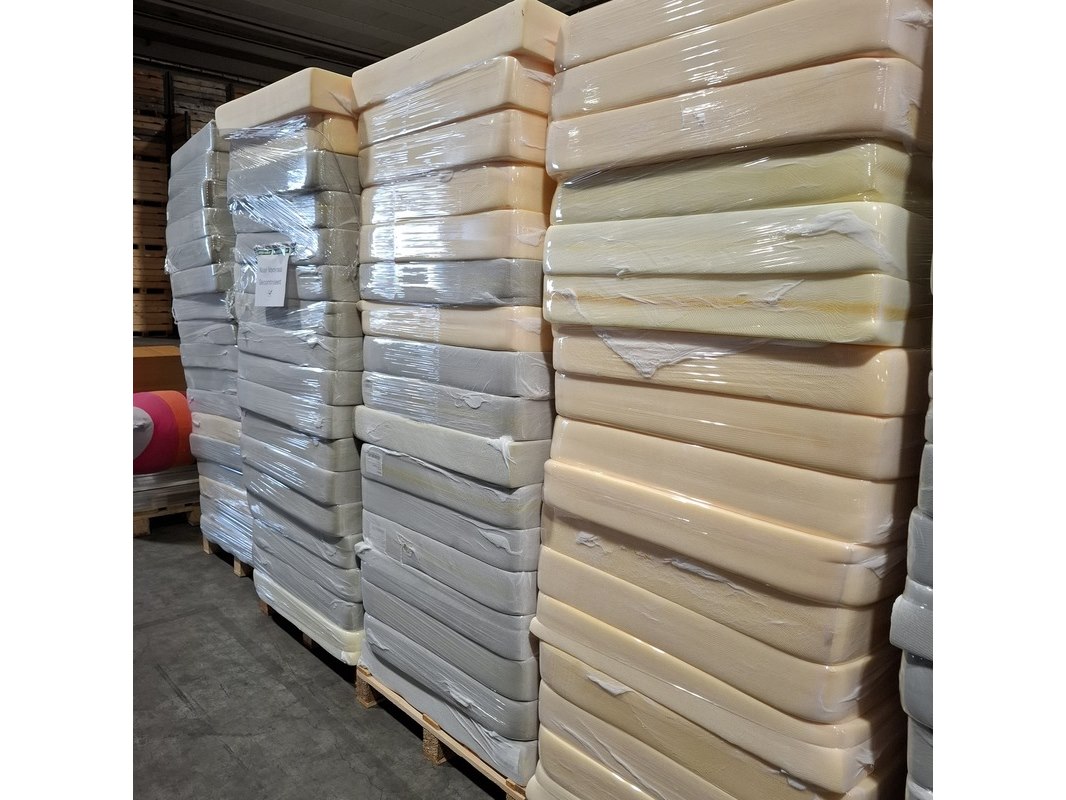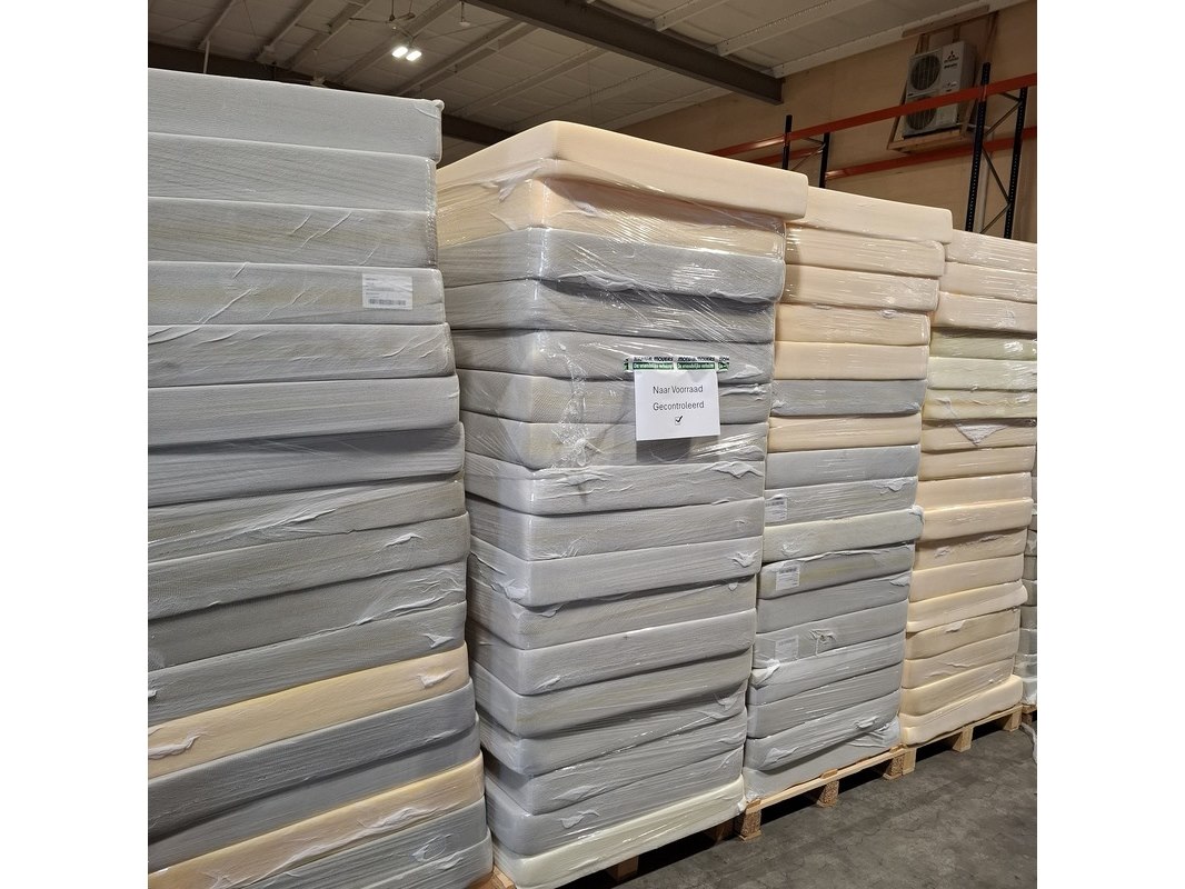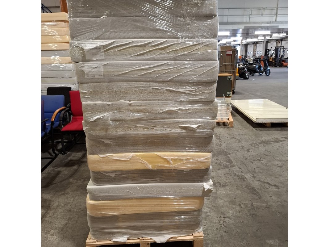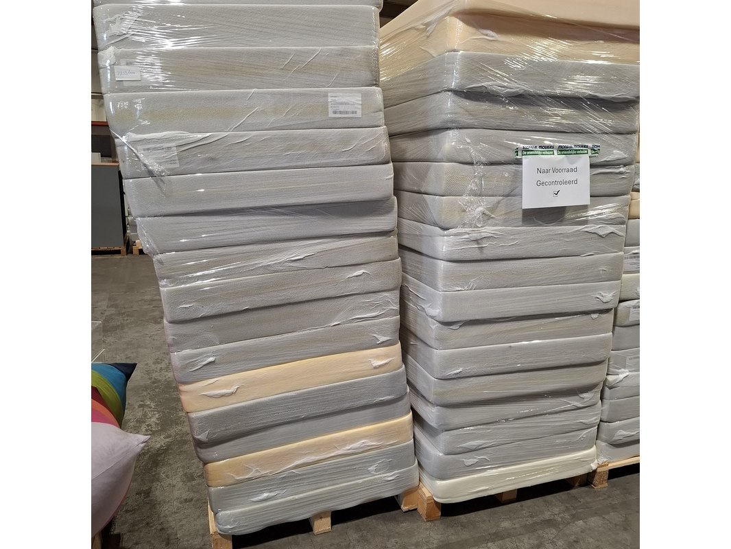 Product: Matras zonder hoes Afmeting: LxBxH ca. 201,5x88,5x12 cm. Conditie: gebruikt Specificaties: De matrassen hebben diverse beschadigingen en vlekken. Let op, zonder hoes! Exclusief pallets.