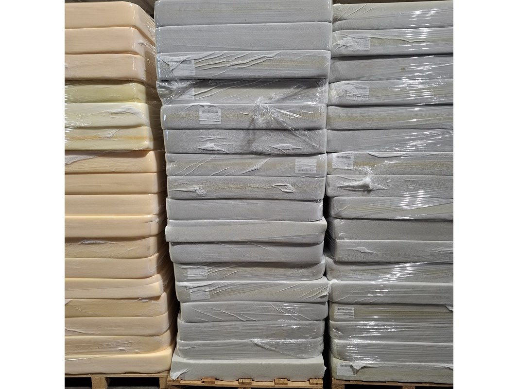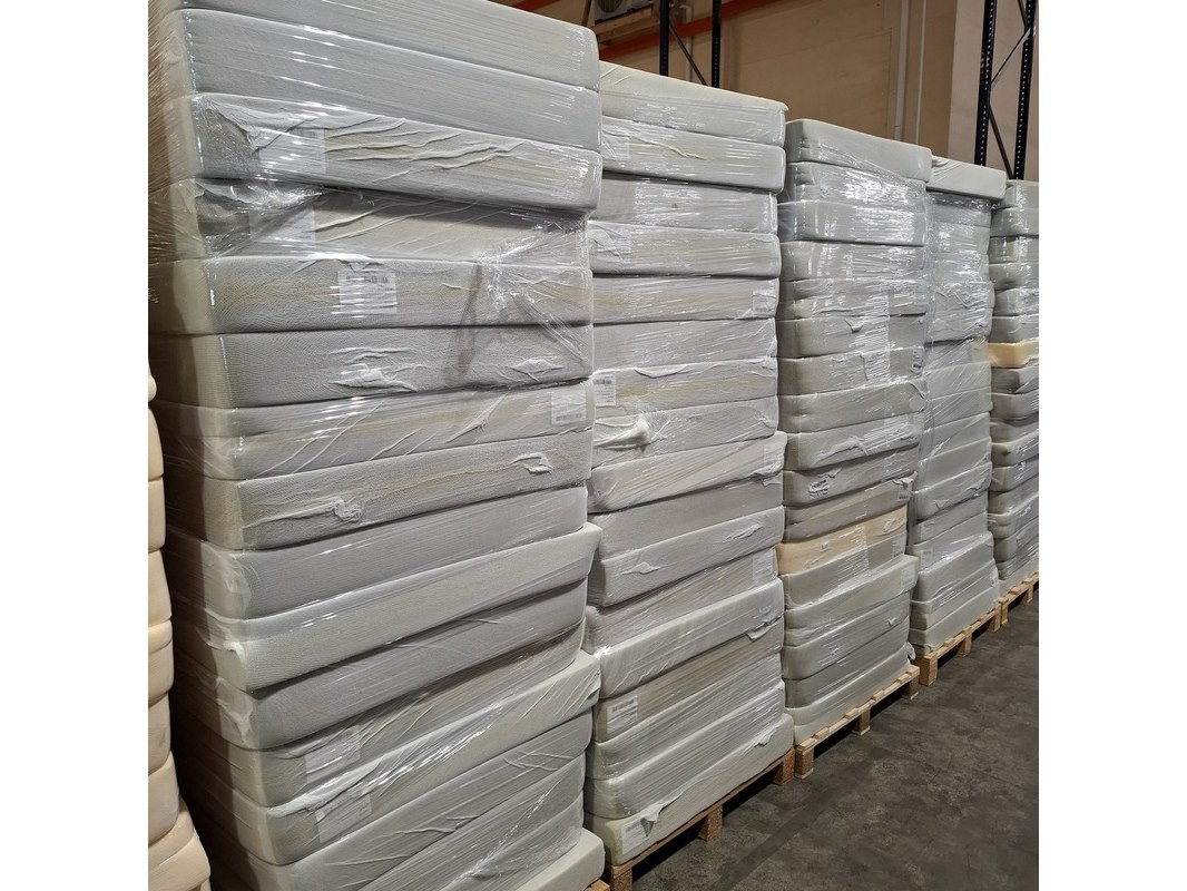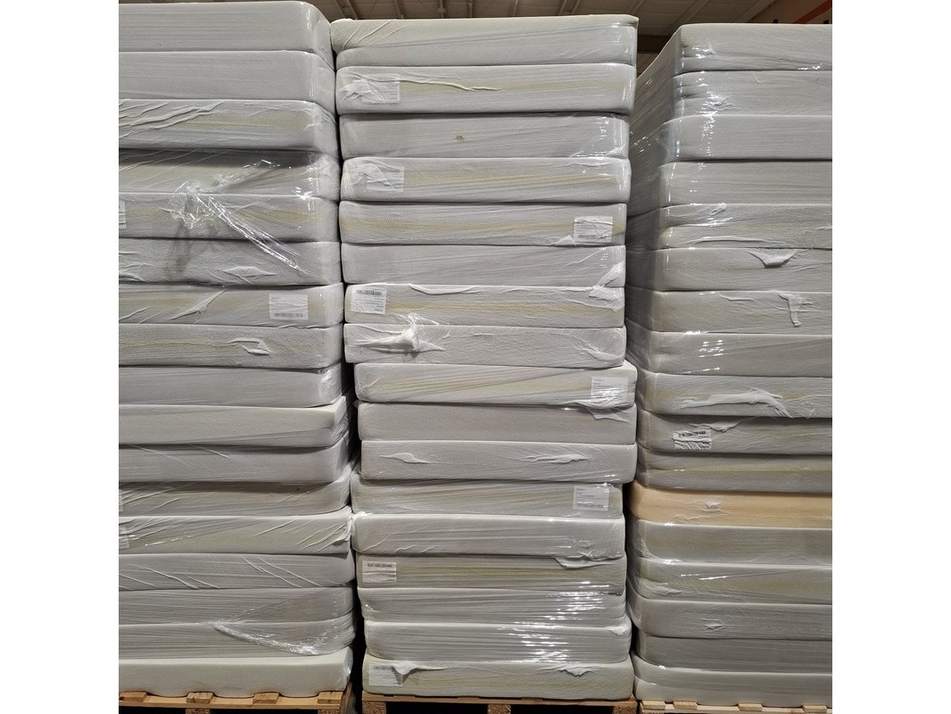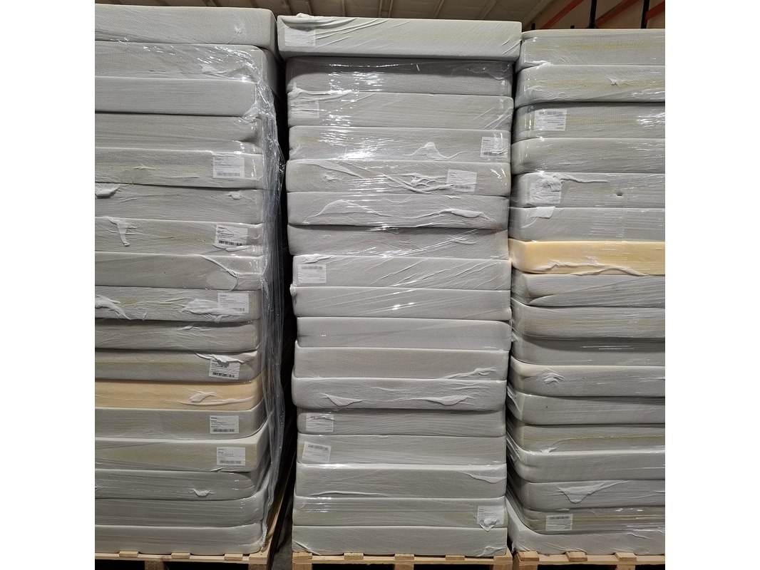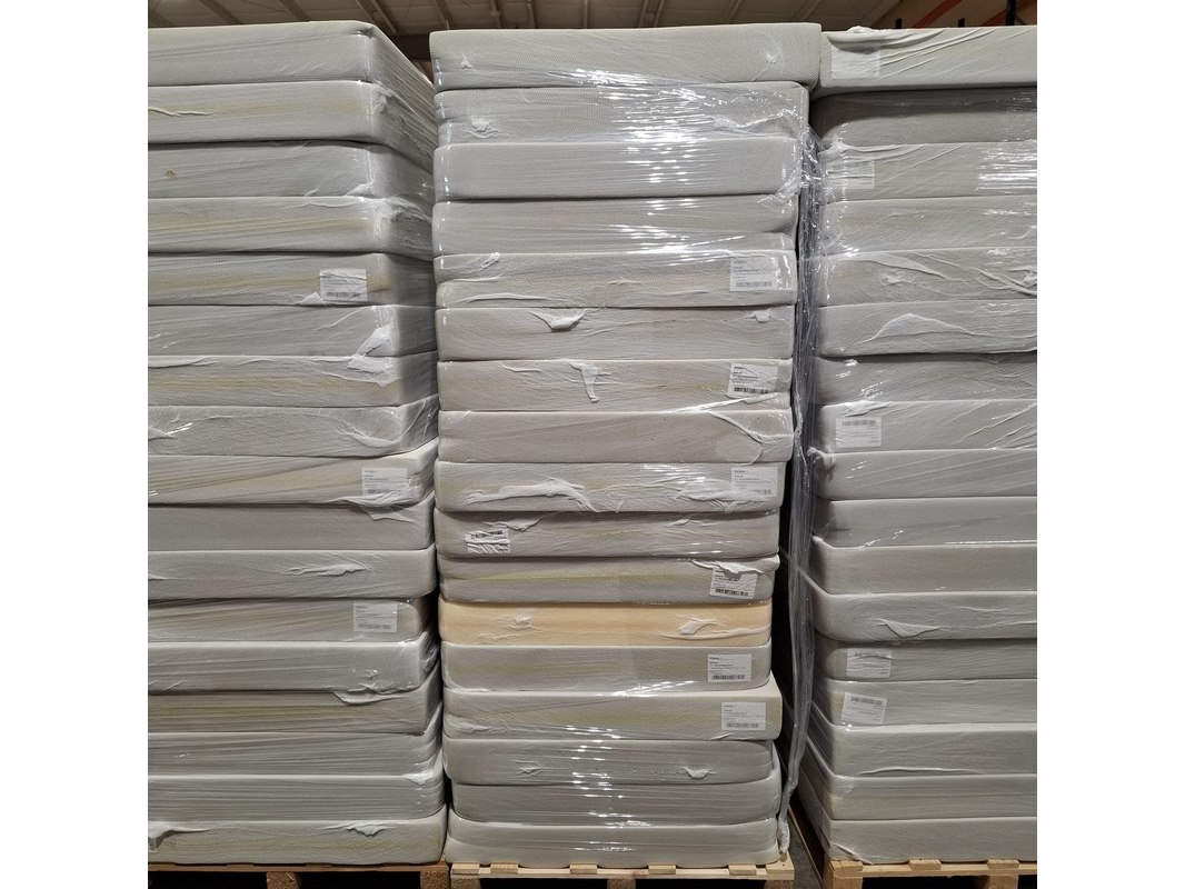 Product: Matras zonder hoes Afmeting: LxBxH ca. 201,5x88,5x12 cm. Conditie: gebruikt Specificaties: De matrassen hebben diverse beschadigingen en vlekken. Let op, zonder hoes! Exclusief pallets.
