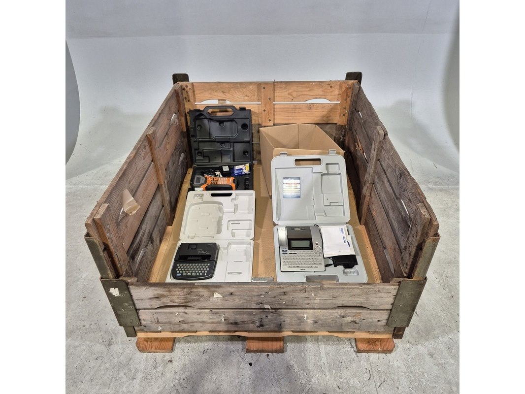 Merk: o.a. Dymo/Brother Product: Diverse bon en label printers Conditie: gebruikt Specificaties: Diverse soorten en maten. Technische staat en compleetheid onbekend. Exclusief palletkist.
