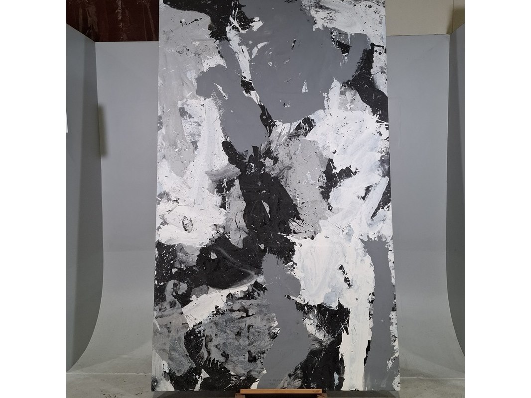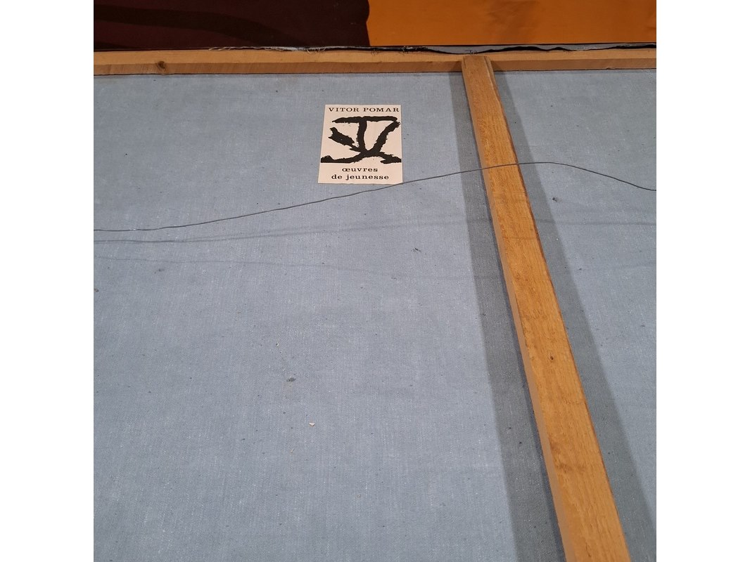 Merk: Vitor Pomar Product: Schilderij Afmeting: hxb ca. 251x150 cm BouwJaar: 1978 Specificaties: Centraal gelegen steunlat ligt los.