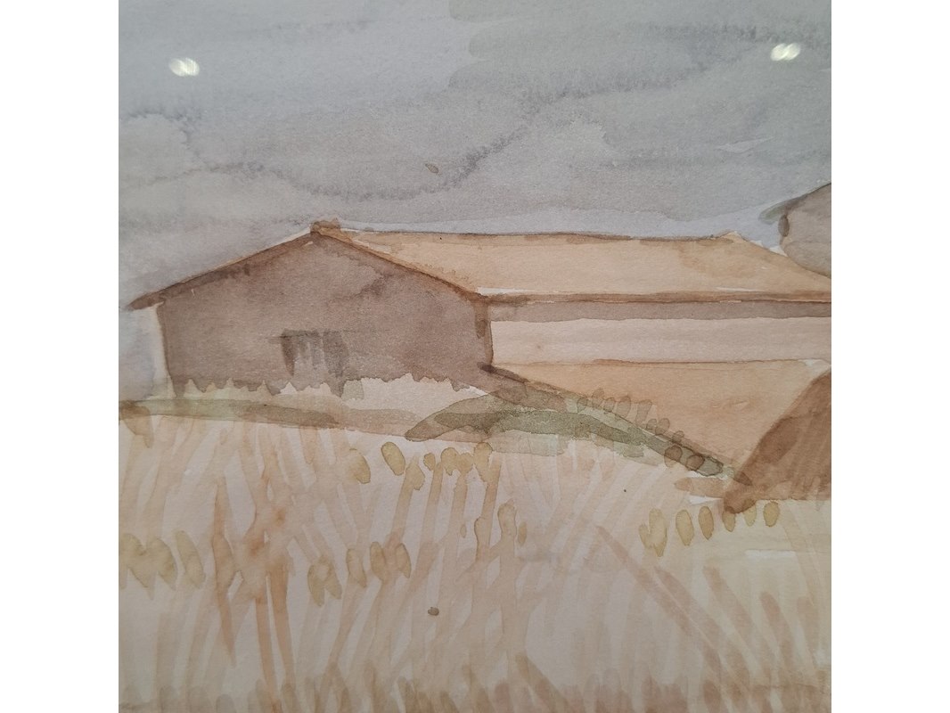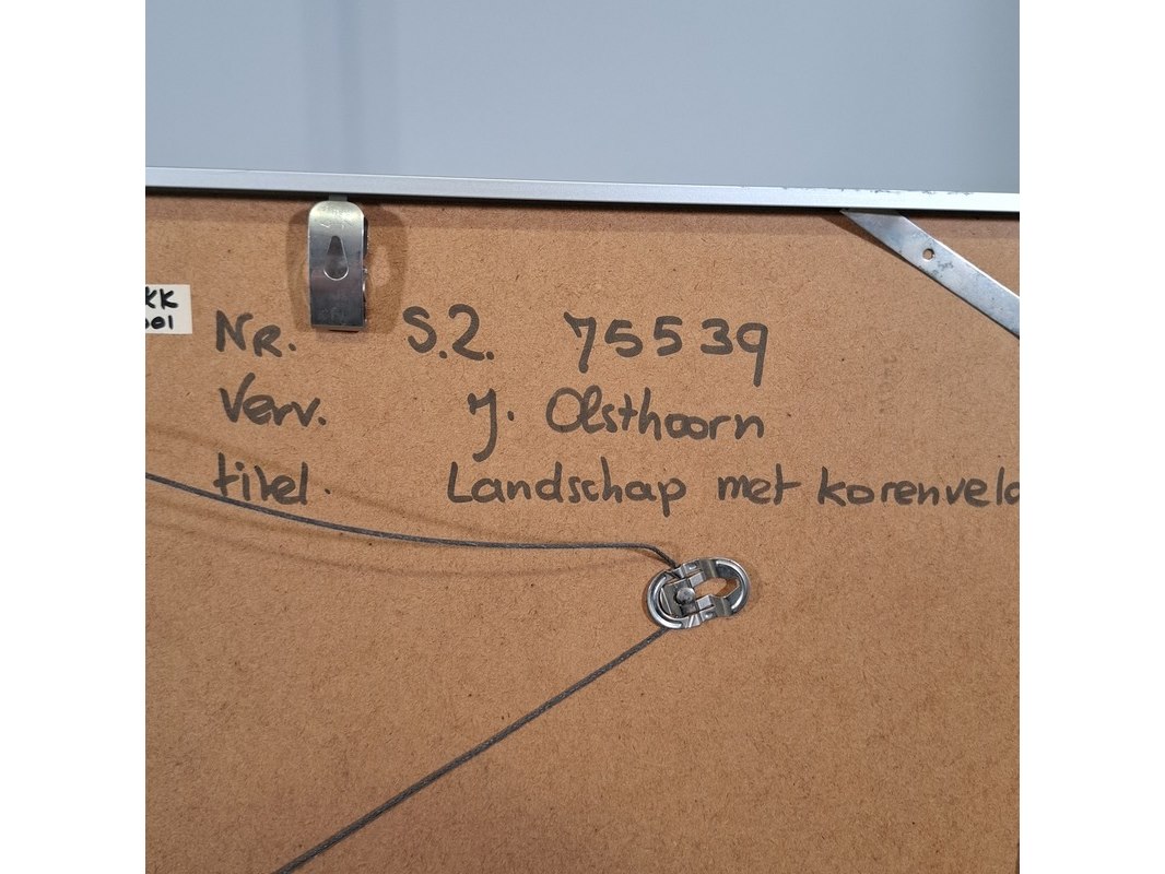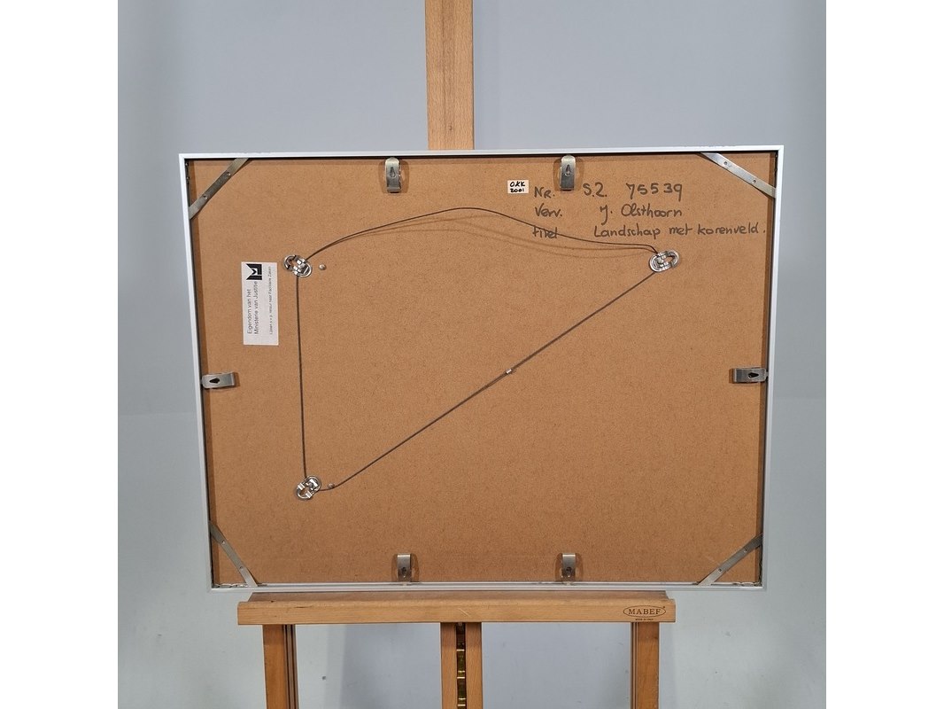 Aquarel, hans olsthoorn, landschap met korenveld, 1972