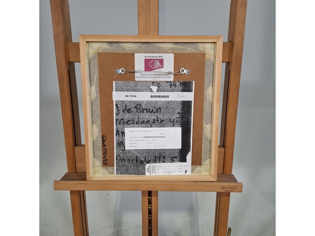 Merk: J. de Bruin Product: Tekening, gemengde techniek Afmeting: hxb ca. 30x25 cm BouwJaar: 1980 Specificaties: