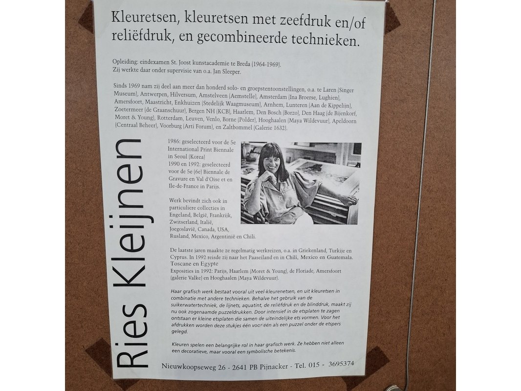 Merk: R. Kleijnen Product: Kleuren ets Afmeting: hxb ca. 84x63 cm BouwJaar: 1990 Specificaties: