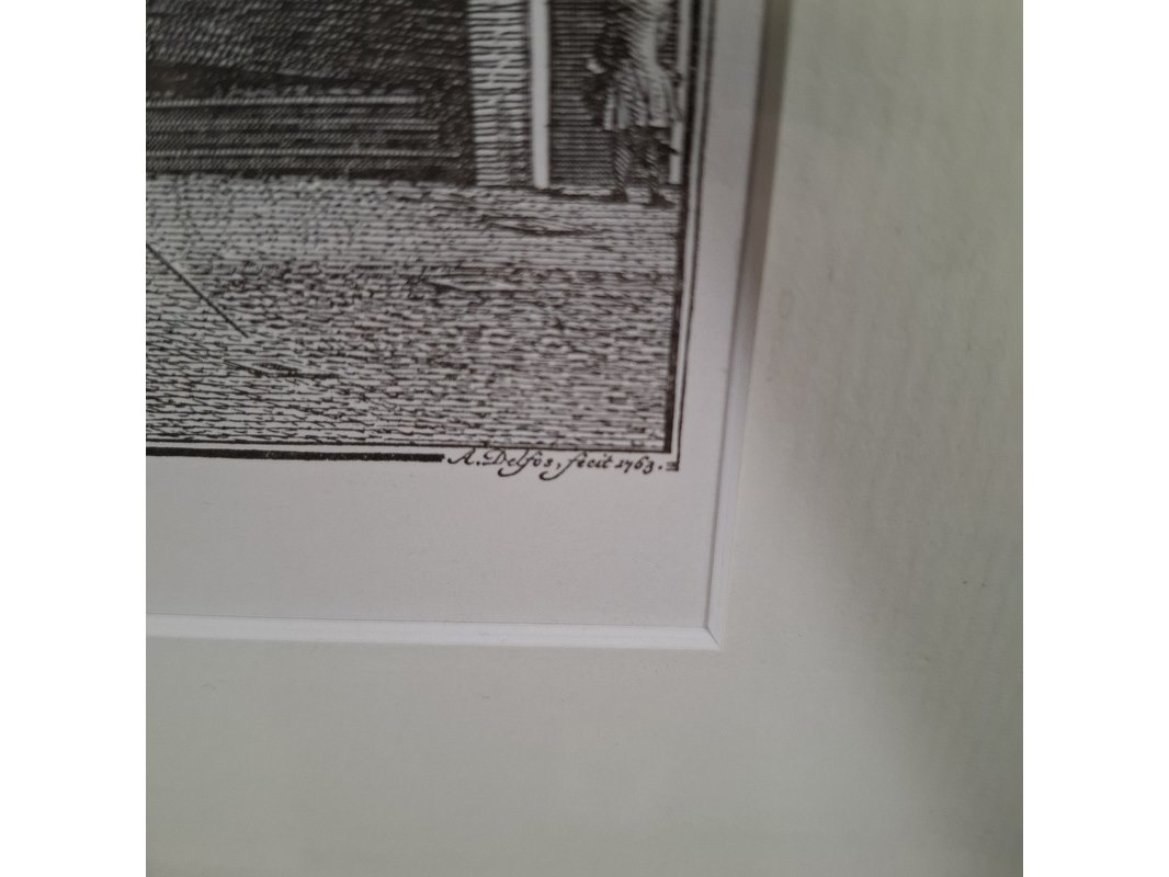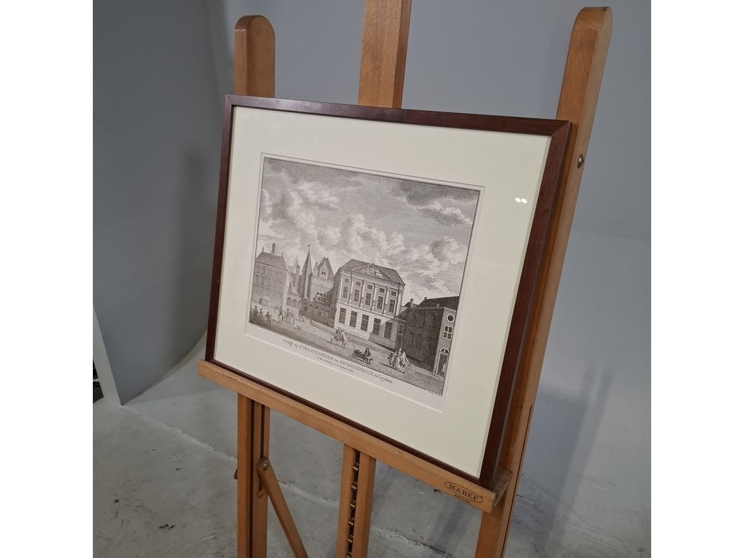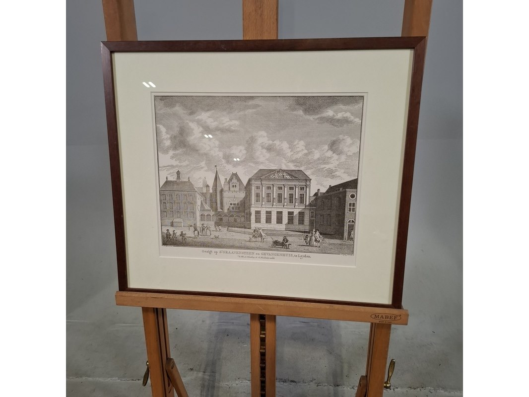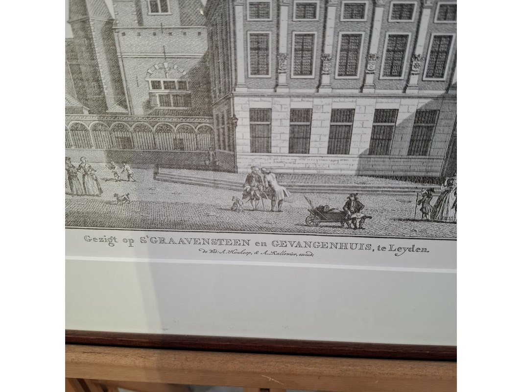 Afbeelding in lijst, gezigt op s'gravensteen en gevangenhuis, te leyden