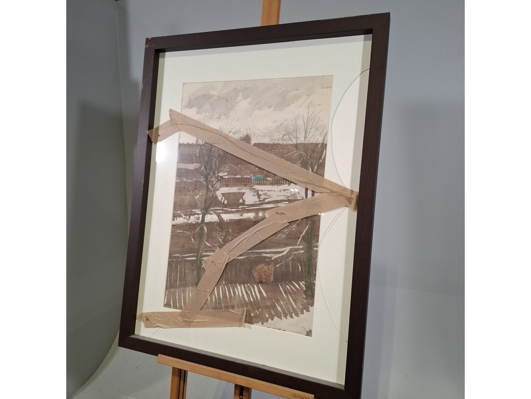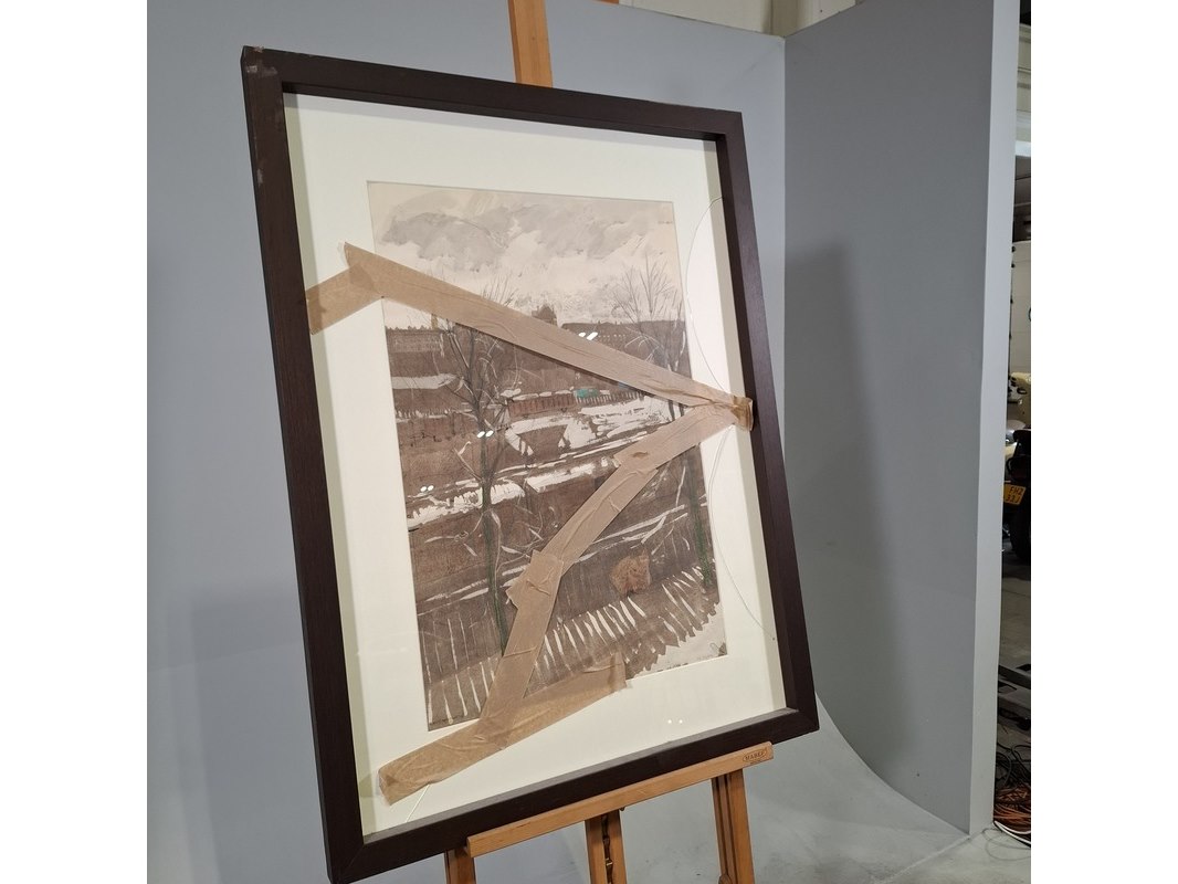 Merk: E.L.W. Wolf Product: Afbeelding in lijst Afmeting: hxb ca. 102x77 cm BouwJaar: 1973 Specificaties: Glas gebroken, lijst beschadigd