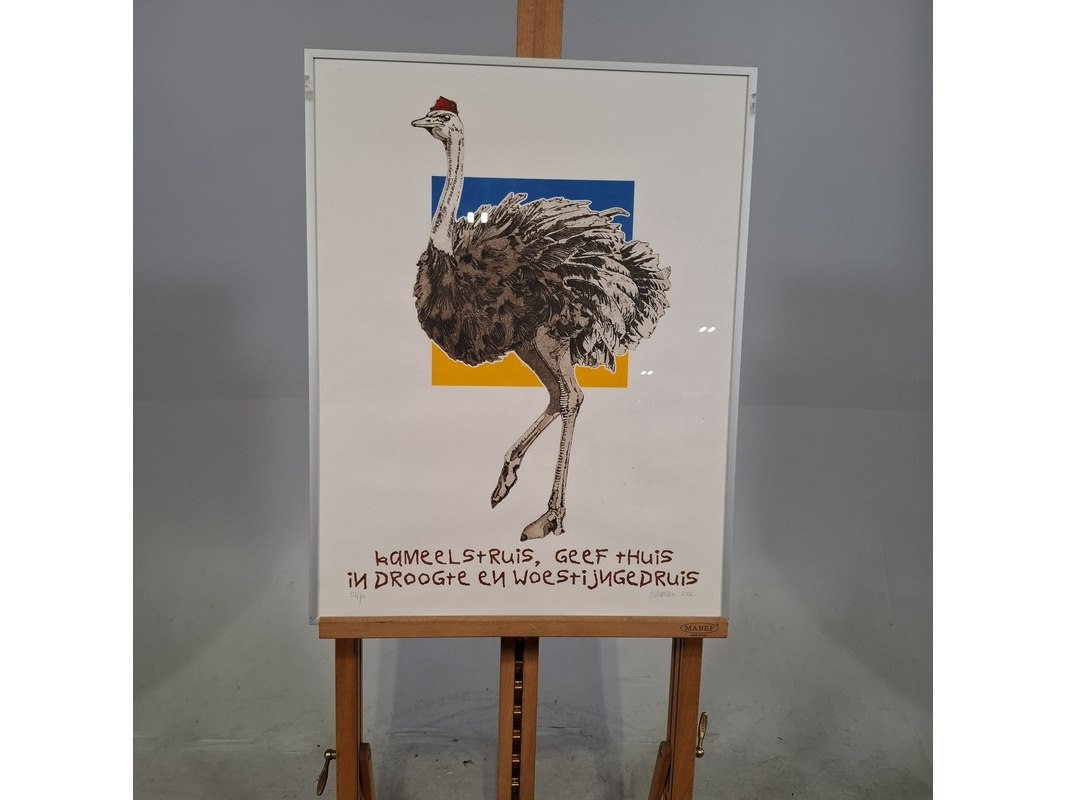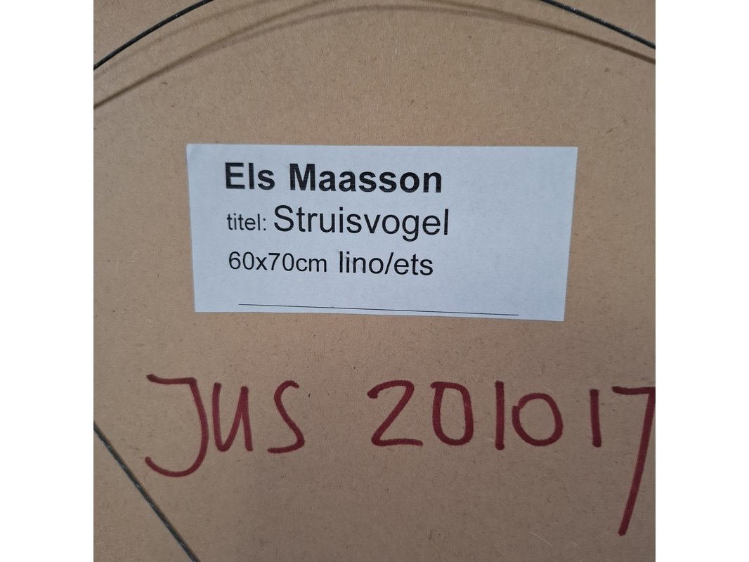 Linoleumsnede/ets, els maasson, struisvogel 53/70, 2002