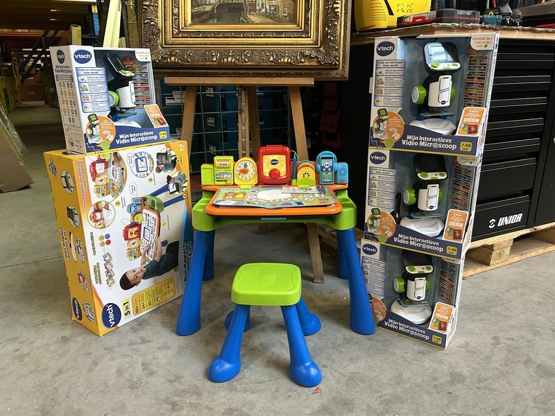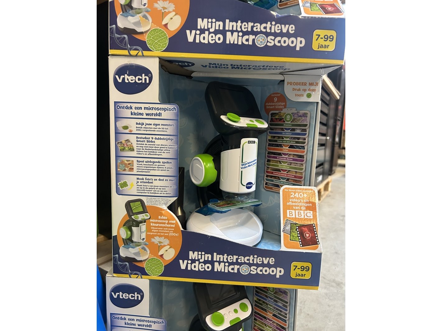 Product: Vtech speelgoed w.o. interactieve video microscoop Specificaties: Nieuw, showroom modellen en demo modellen. 4x interactieve video microscoop zonder batterij. 1x speeltafel zonder geheugenkaart.