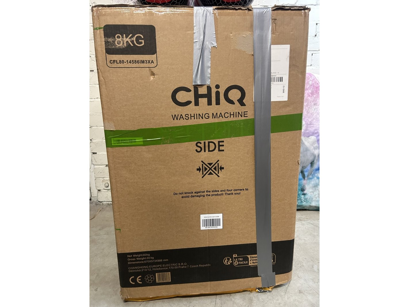 Merk: CHiQ Product: Wasmachine 8 kg 16 programma's Space Pro Afmeting: 600x520x847 mm Specificaties: Demo model.