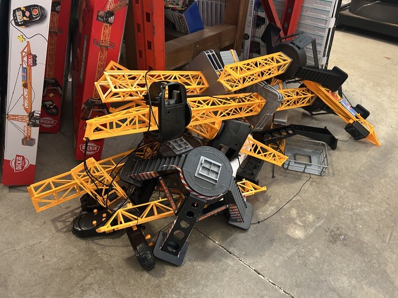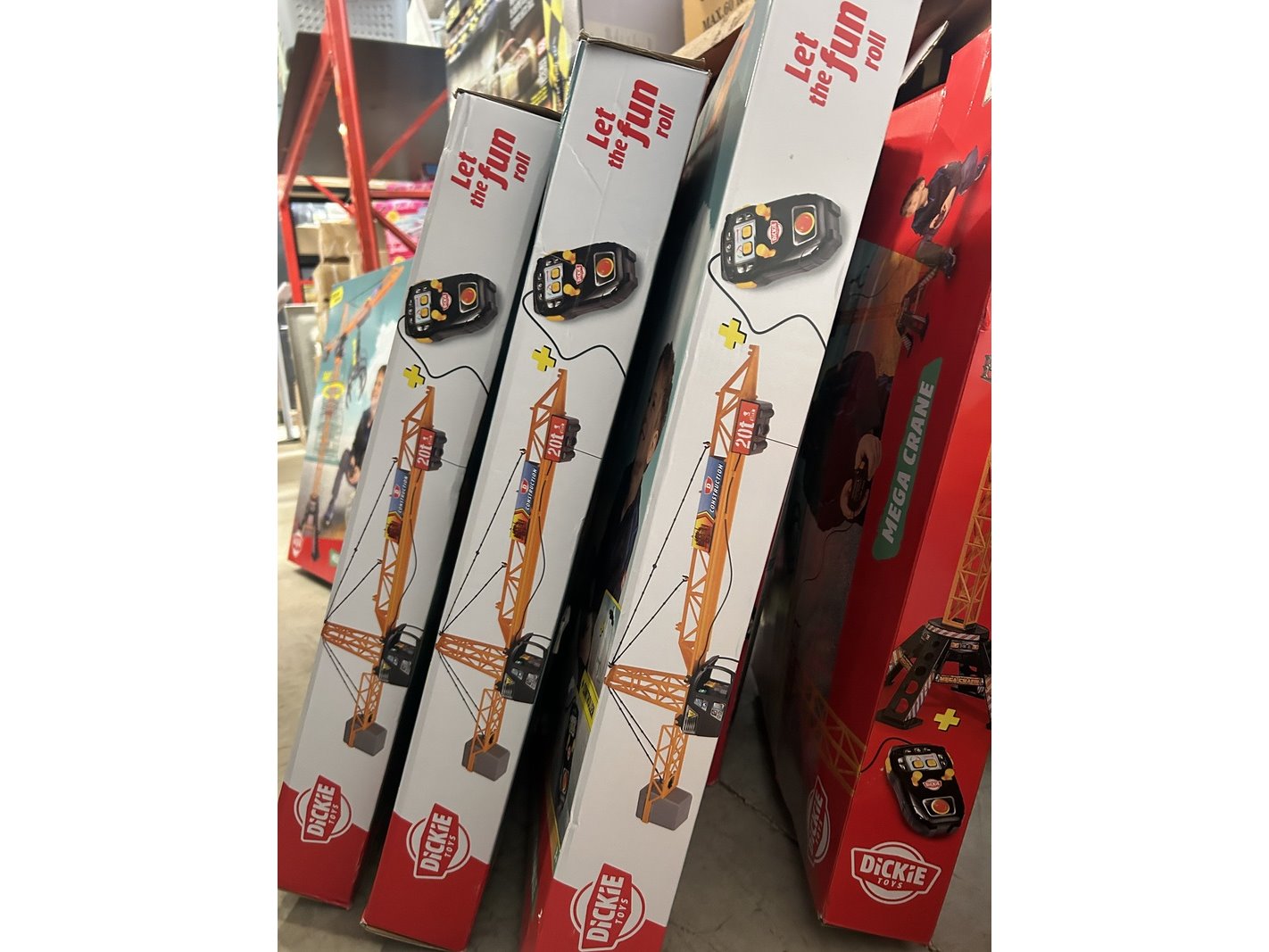 Merk: Dickie Toys Product: Giant constructie kraan 120 cm Specificaties: Nieuw, showroom modellen en demo modellen. Werking onbekend. Niet compleet.