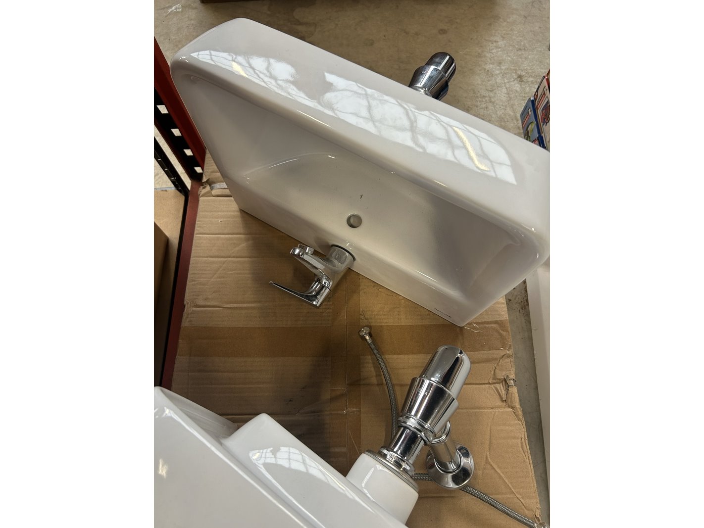 2x wastafel met kraan, 1x douchebak w.o. geberit