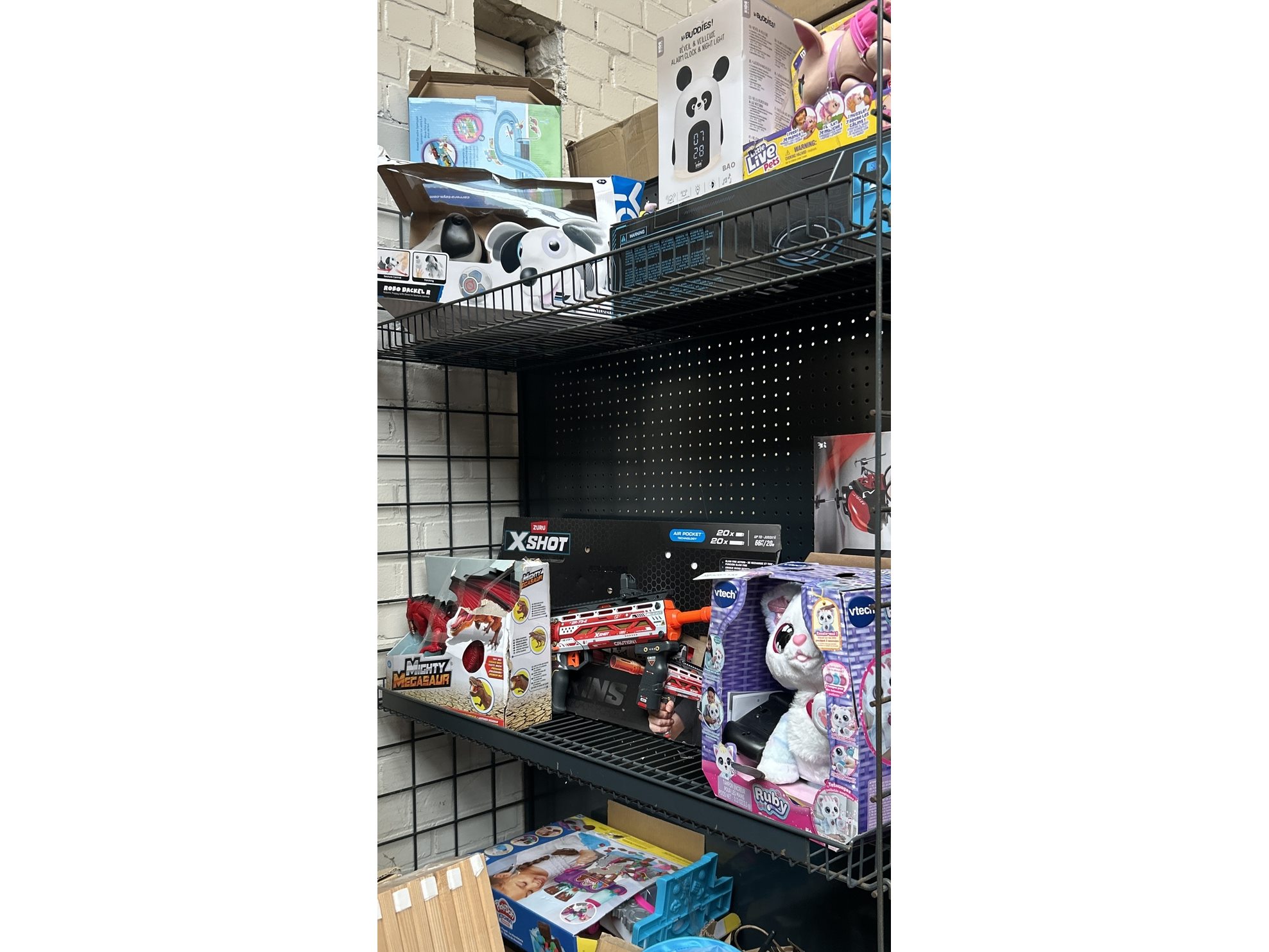 Merk: w.o. Vtech, YCOO, Zuru X-Shot, Play-Doh Product: Inhoud stellingvak met A-merk speelgoed Specificaties: Nieuw, showroom modellen en demo modellen. Werking onbekend. Niet compleet.