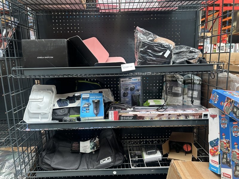 Merk: w.o. Philips, Hapé Product: Inhoud stellingvak w.o. dry shaver, opblaasbare poef, tas Specificaties: Nieuw en demo modellen.