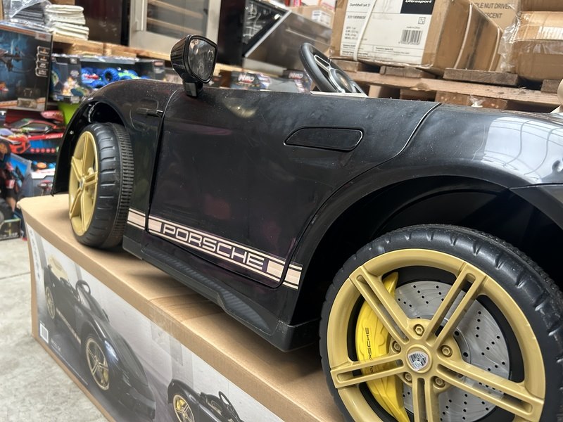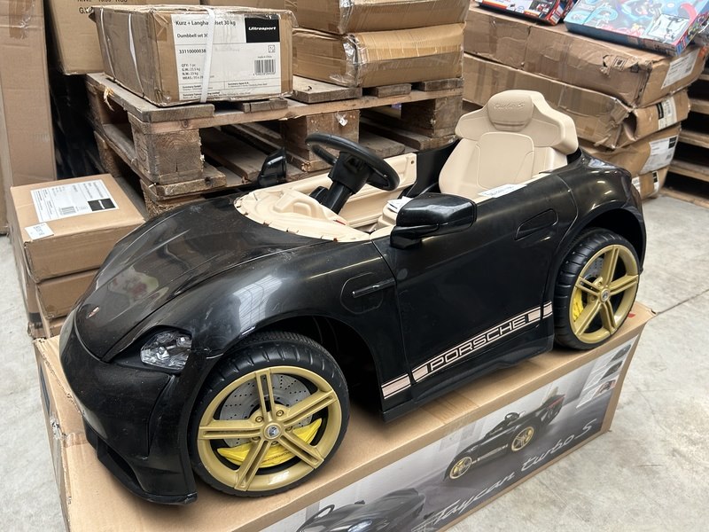 Product: Accu auto Porsche Taycan Black Edition 12V Specificaties: Demo model. Beschadigd. Zonder raam.