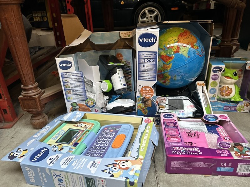 Product: Vtech speelgoed Specificaties: Nieuw, showroom modellen, demo modellen en gebruikt. Werking onbekend. Niet compleet.