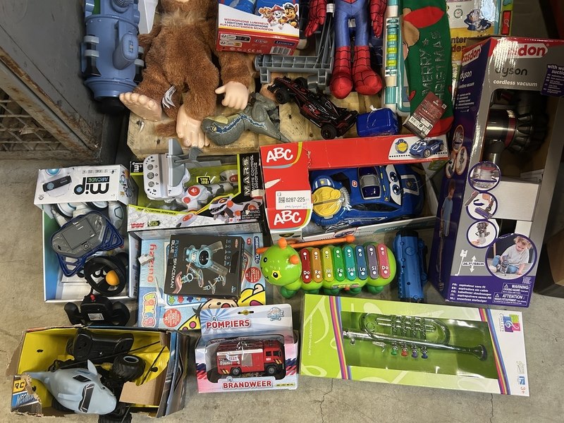 Merk: w.o. Casdon Dyson, Paw Patrol, Hot Wheels Mario Bros, Clementoni Bumba Product: Partij speelgoed Specificaties: Nieuw, showroom modellen en demo modellen. Werking onbekend. Niet compleet.
