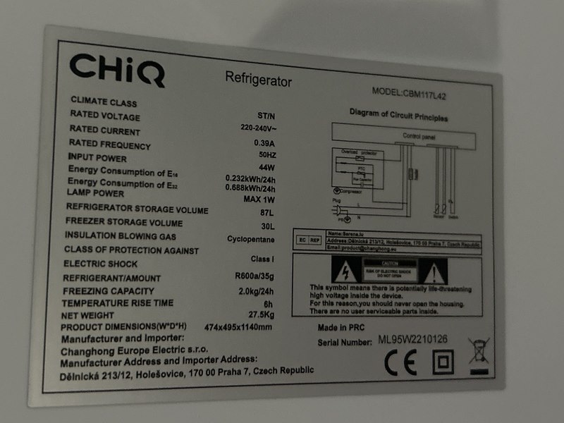 Merk: CHiQ Product: Koel-vriescombinatie 117 liter Conditie: nieuw Specificaties: Beschadigd door transport.