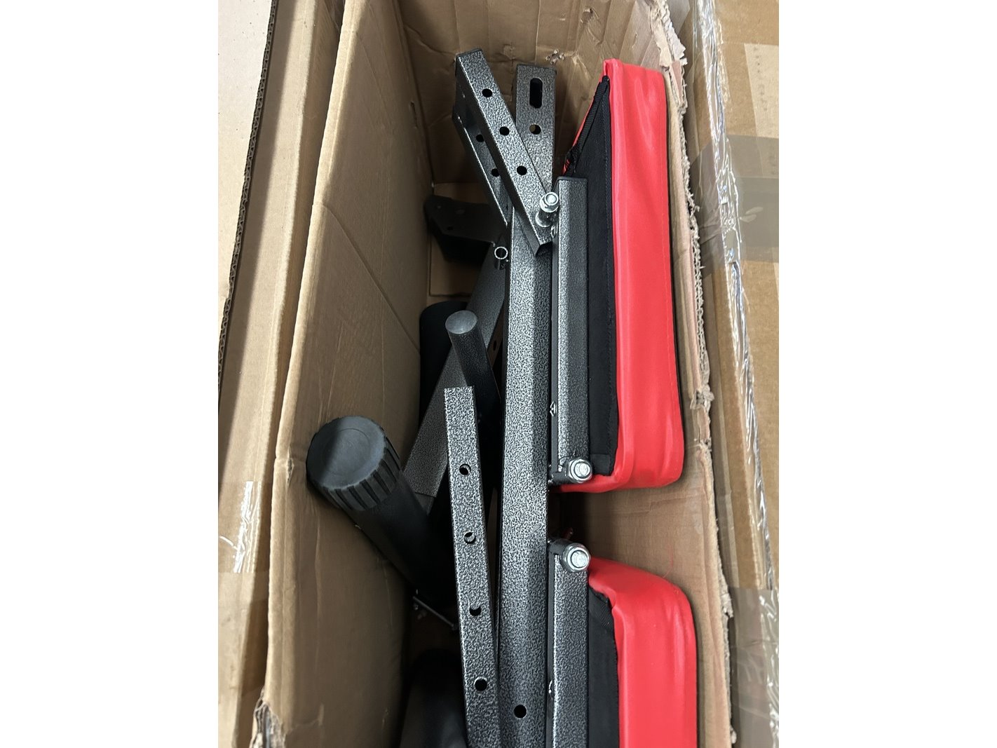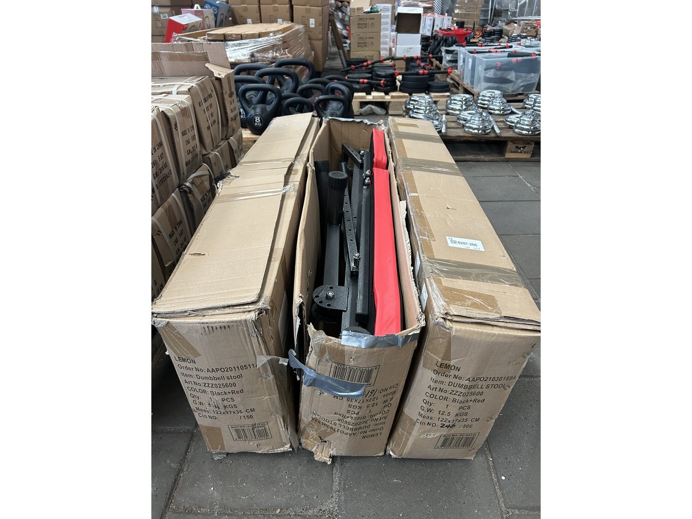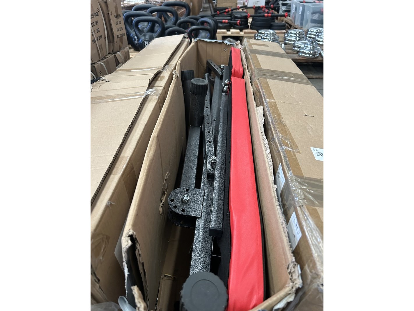 Product: Fitness halterbank Specificaties: Showroom modellen en demo modellen. Verpakking beschadigd.