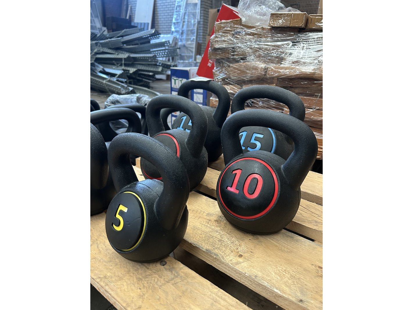 Product: Kettlebell (2x 15kg, 2x 10kg, 2x 5kg) Conditie: nieuw