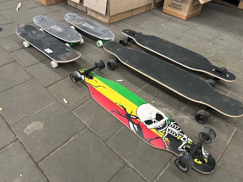 Product: Longboard, skateboard Specificaties: 3x nieuw, 3x gebruikt.