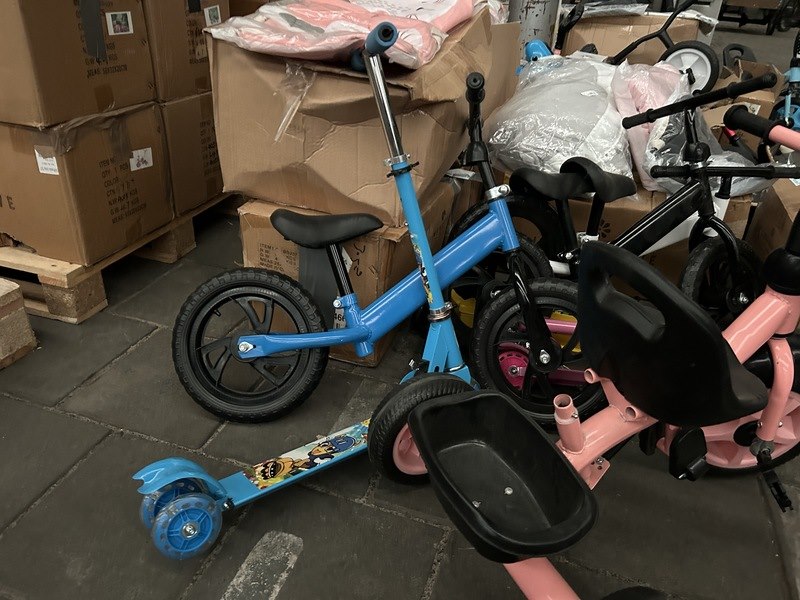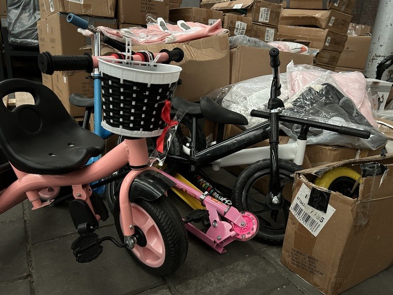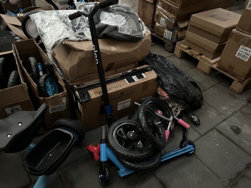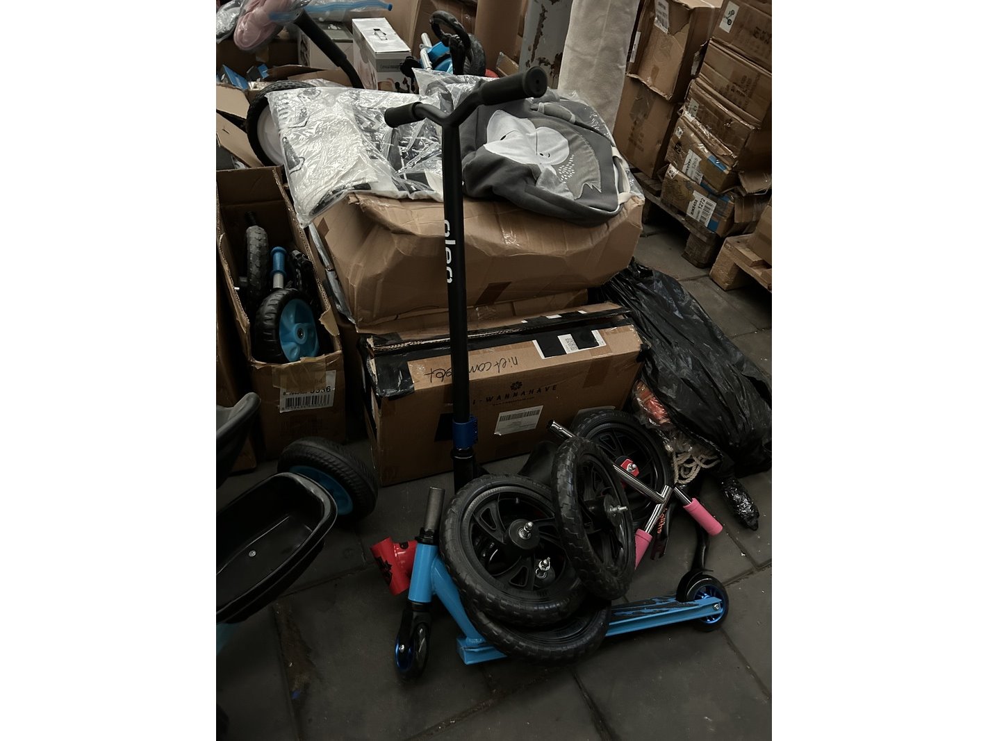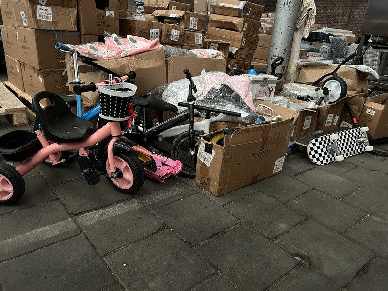 Product: Mix partij speelgoed en consumenten goederen Specificaties: Nieuw, showroom modellen en demo modellen. Werking onbekend. Niet compleet. Let op! De pallets op de achtergrond van de foto's zijn niet inbegrepen bij deze kavel.