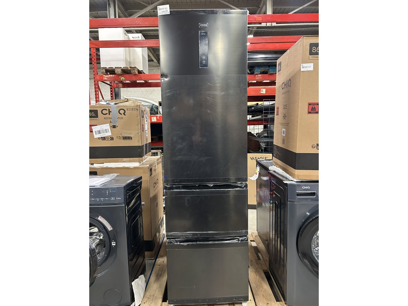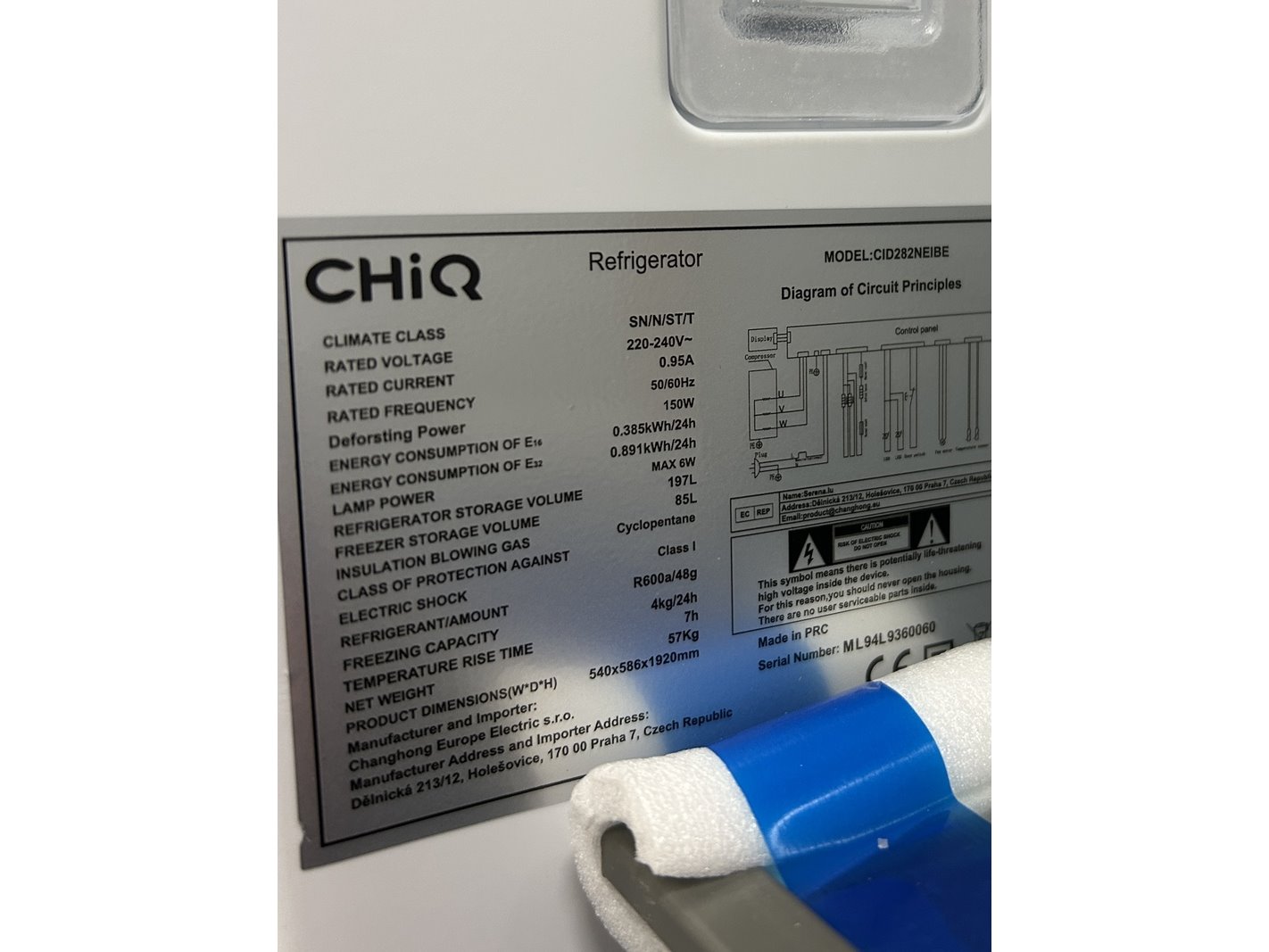 Merk: CHiQ Product: Koel-vriescombinatie 282 liter Afmeting: 540x576x1810 mm Specificaties: Showroom model. Beschadigd door transport. Onderkant treklade.