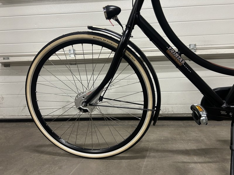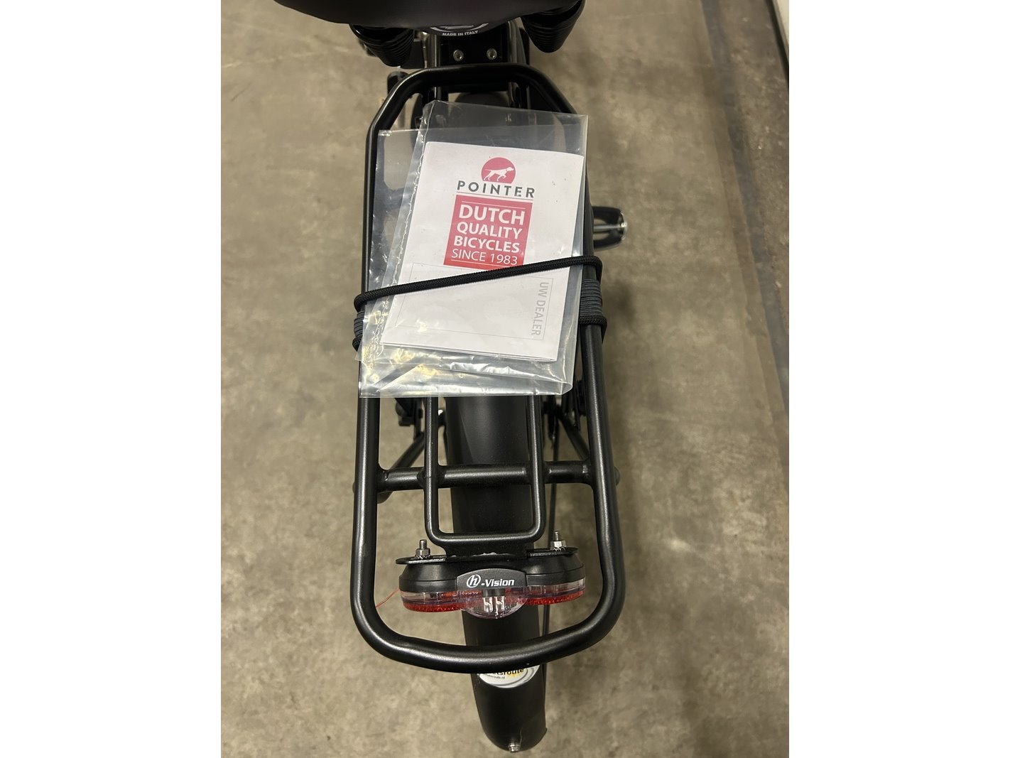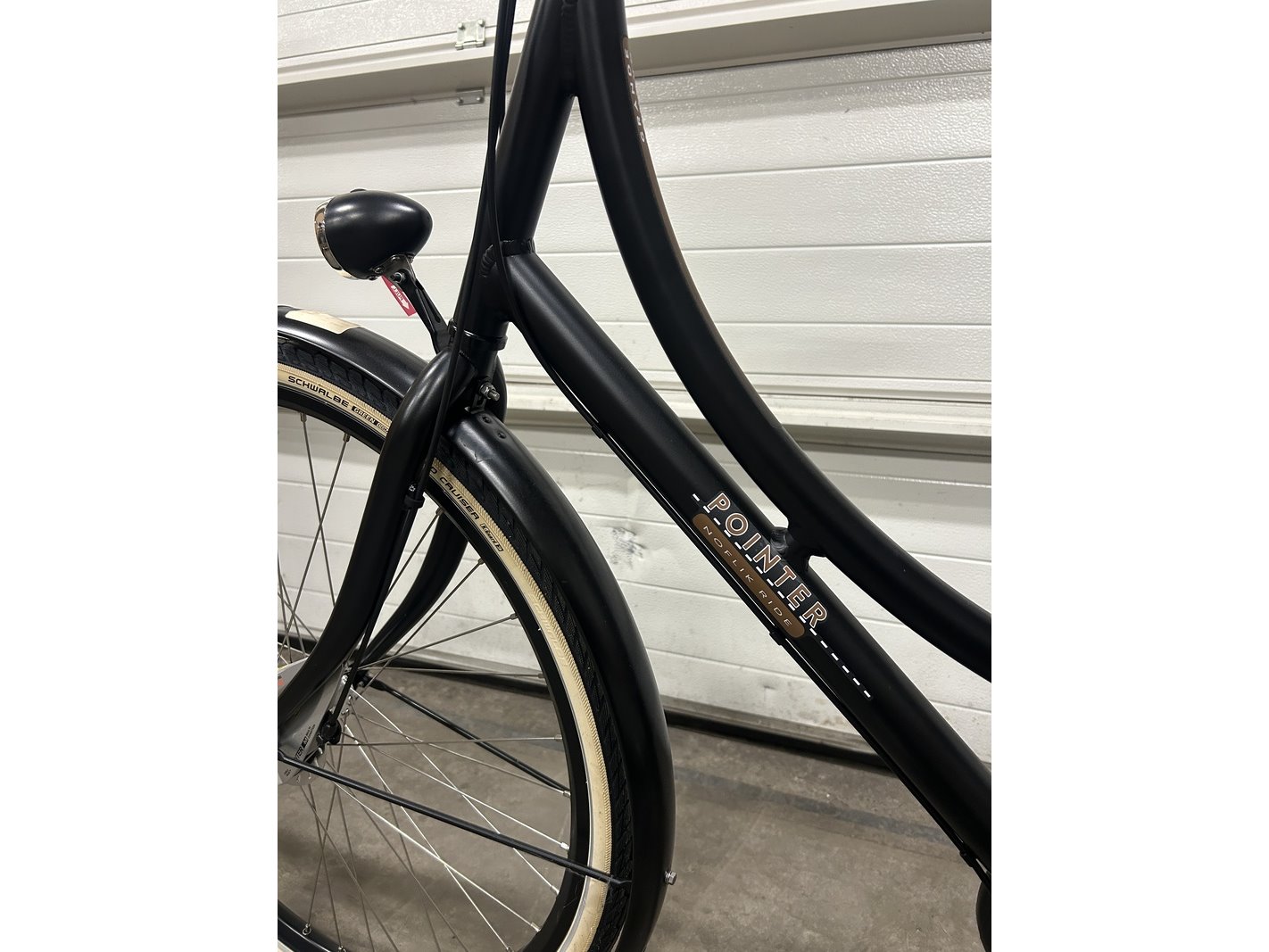 Merk: Pointer Product: Dames stadsfiets 51 cm 3 versnellingen Kleur: zwart Afmeting: Hoogte 51 Specificaties: Nieuw. Deze fiets is uitsluitend als showroommodel gebruikt en verkeert daardoor in nieuwstaat, zonder gebruikssporen.