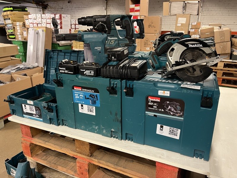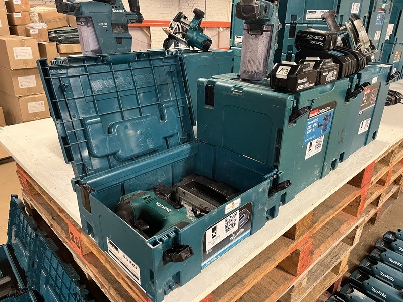 Merk: Makita Product: Bouwgereedschap, 3x accu, 1x lader, M-boxen Conditie: gebruikt Specificaties: De machines zijn afkomstig van een professioneel bouwbedrijf waar ze jaarlijks zijn gekeurd en goed onderhouden. Alle machines zijn functioneel getest en werken naar behoren, maar vertonen gebruikssporen zoals krassen, stootplekken en stofresten die passen bij intensief gebruik op de bouw. Deze kavels zijn ideaal voor vaklieden, aannemers of handige doe-het-zelvers die op zoek zijn naar betrouwbaar Makita-gereedschap voor een scherpe prijs. Let op! Zonder accu, zonder lader.
