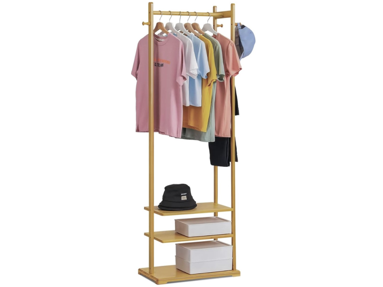 Merk: I-Wannahave Product: Bamboe kledingrek/kapstok Afmeting: 58x35x176 cm Conditie: nieuw