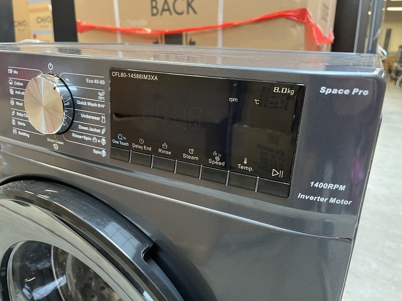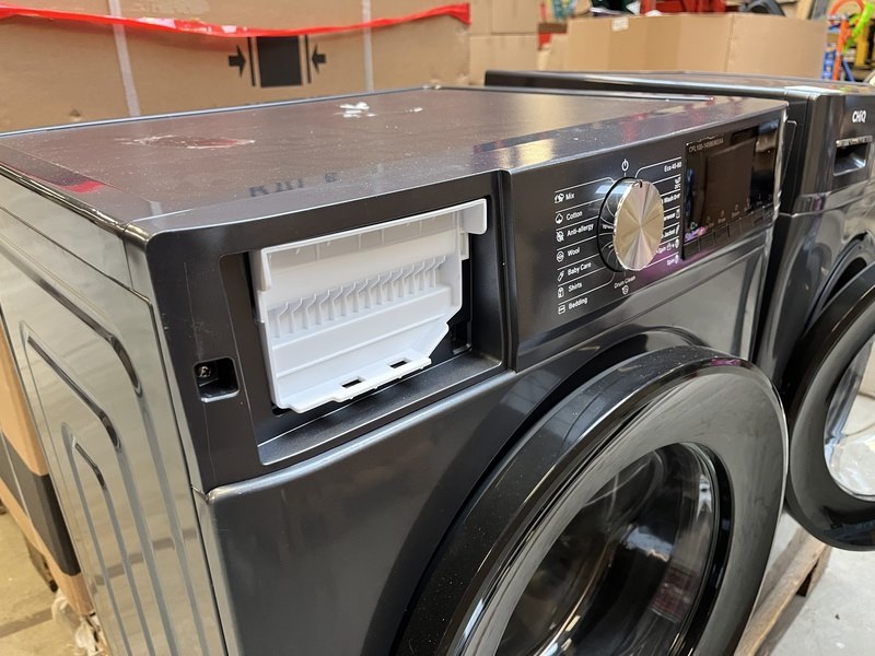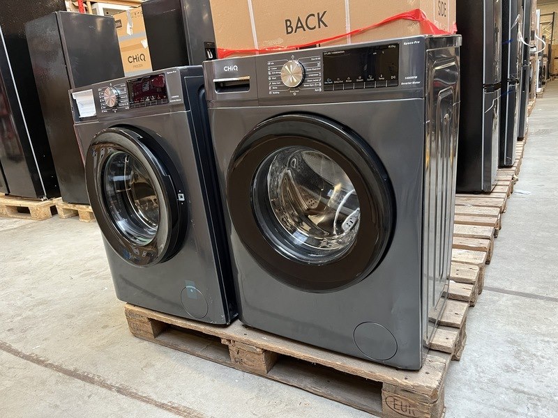 Merk: CHiQ Product: Wasmachine 8kg, 1x wasmachine 10kg Specificaties: Demo model. Beschadigd door transport. 1x kap ontbreekt.