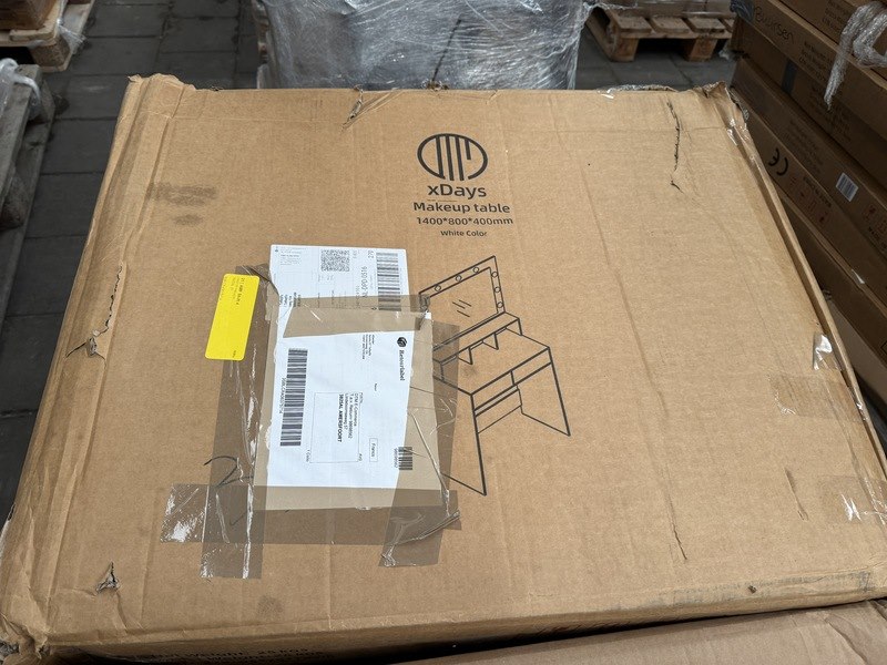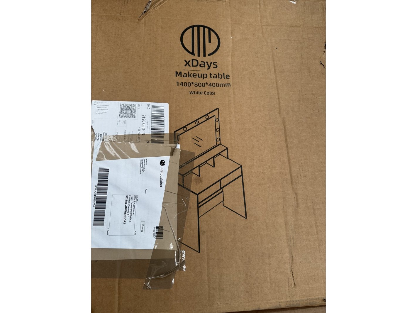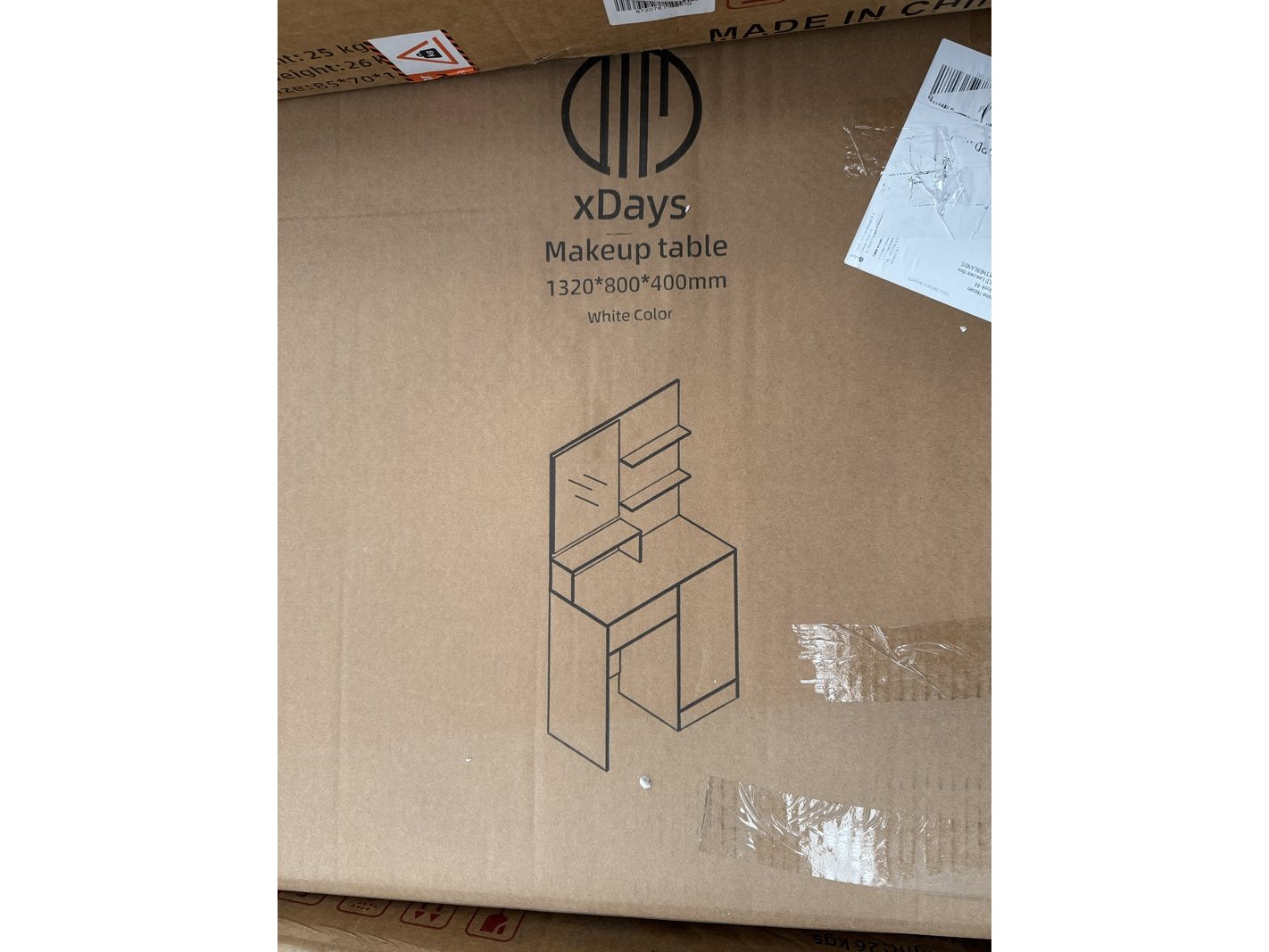 Merk: w.o. xDays, Product: Mix pallet retouren w.o. make-up tafels, wasmanden en stellingkasten Specificaties: Nieuw, showroom modellen en demo modellen. Werking onbekend. Niet compleet.