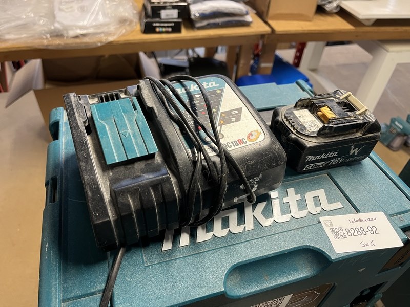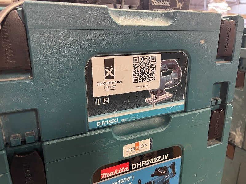 5x bouwgereedschap, 1x 18v accu, 1x lader, m-boxen makita, 1x djv182zj, 1x dhr242zjv, 1x dhs630zj, 2x ddf484rt3j