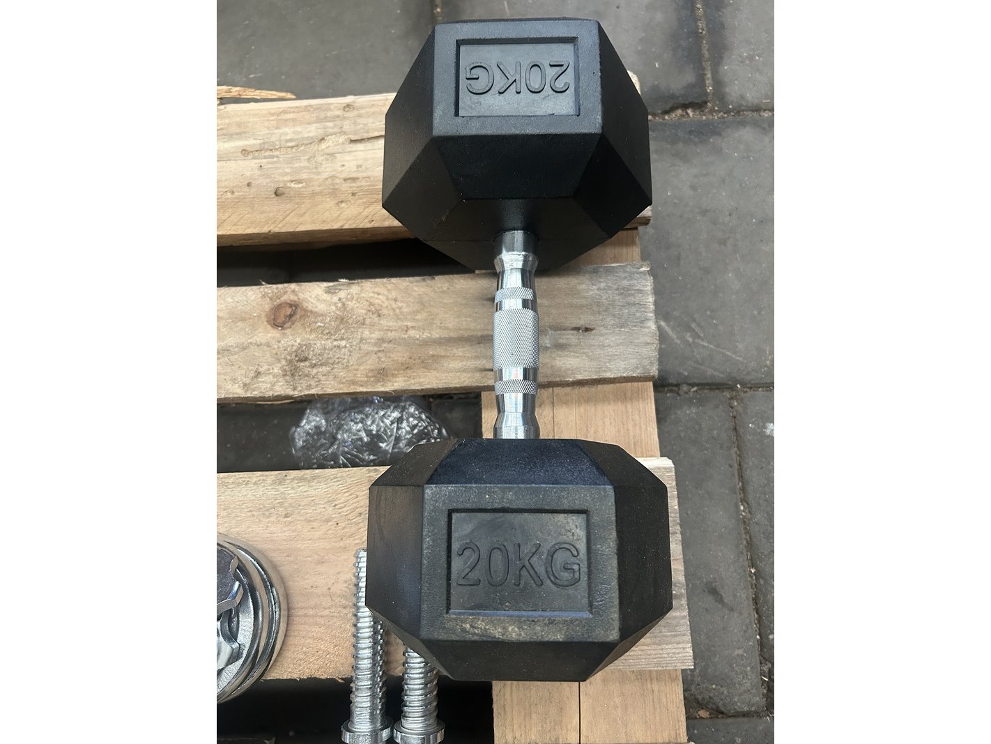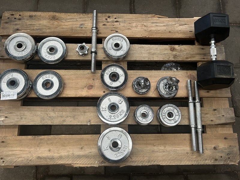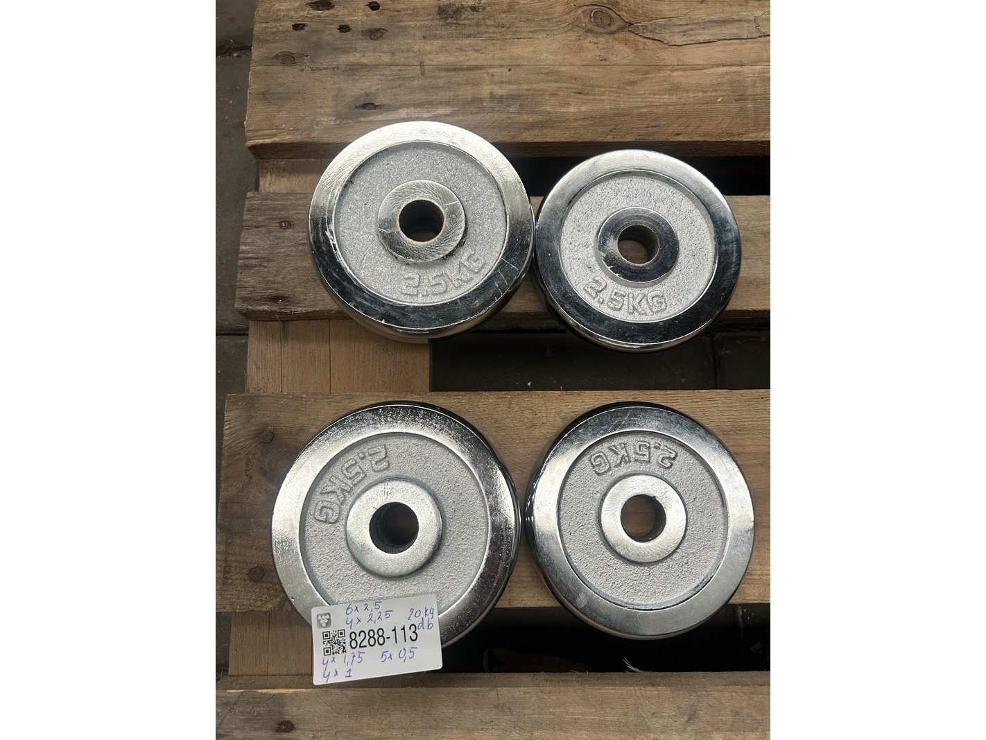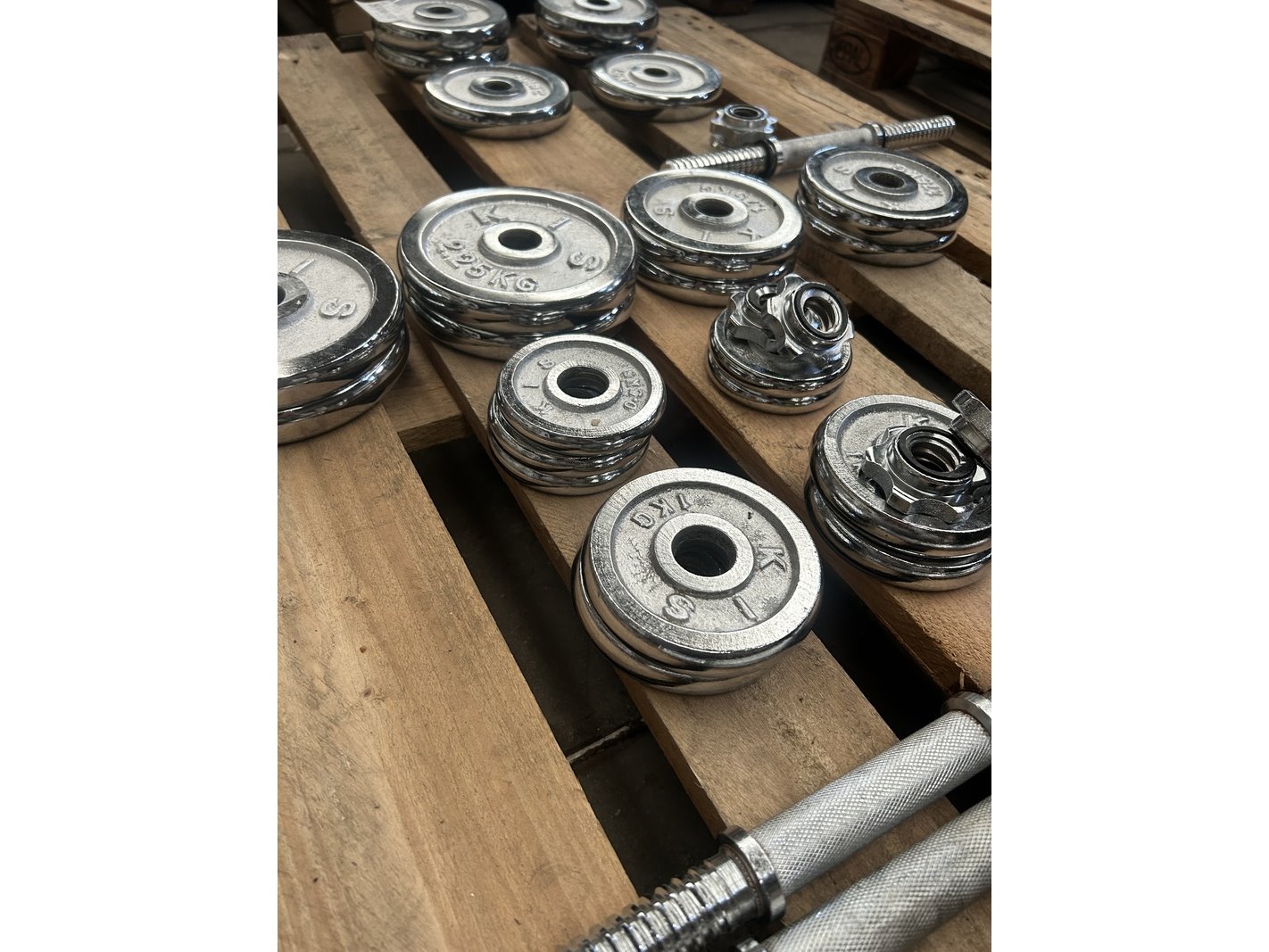 Product: Haltersets met 23 halterschijven gietijzer Specificaties: Nieuw en showroom modellen. 6x 2,5kg 4x 2,25kg 4x 1,75kg 4x 1kg 5x 0,5kg