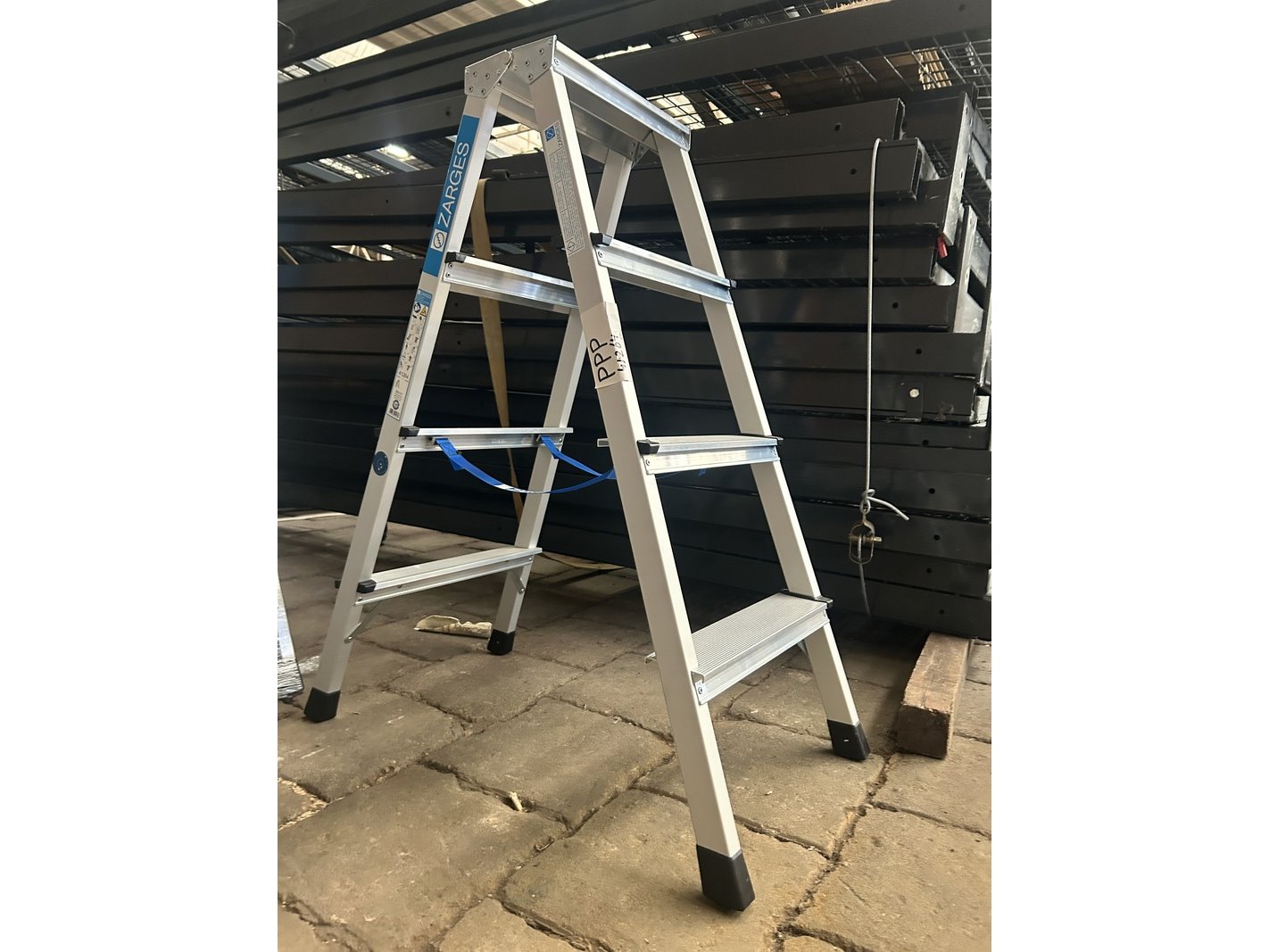 Merk: Zarges Product: Trap met veiligheidsplatform 2x4 treden Specificaties: Showroom model.