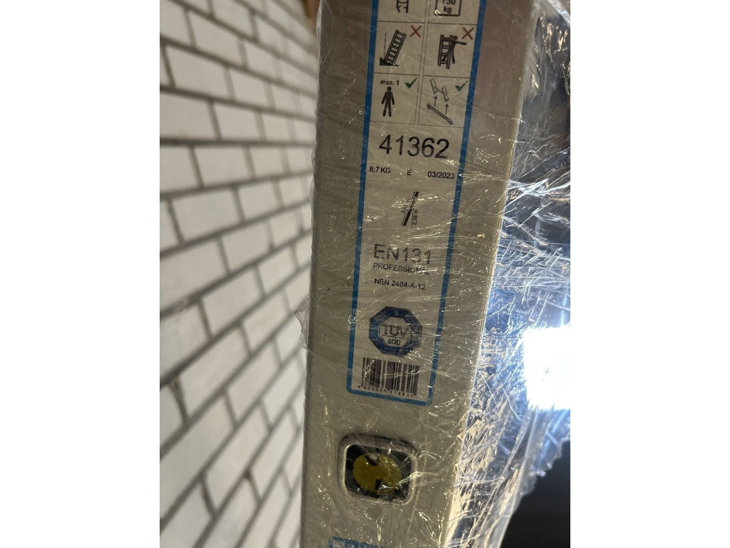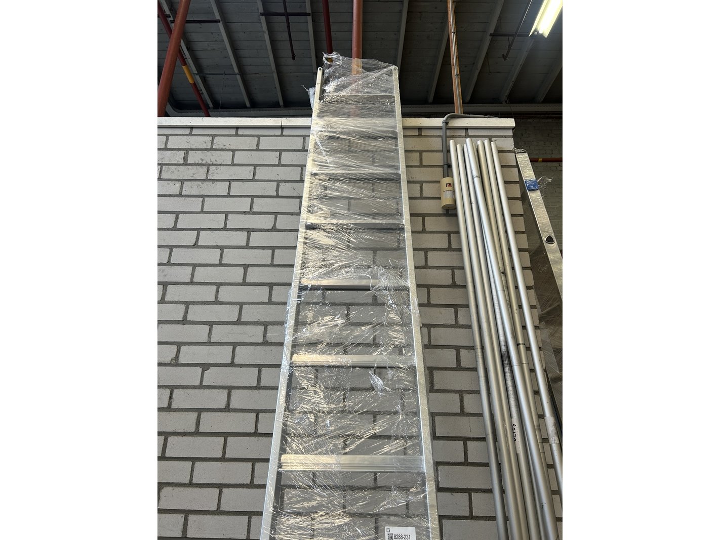 Merk: Zarges Product: Aanlegladder met 12 treden met opstaande rand Specificaties: Showroom model.
