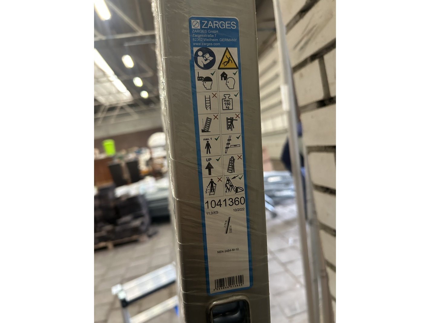 Merk: Zarges Product: Inhangladders voor stellingkasten met gefelste treden 10 treden Specificaties: Showroom model.