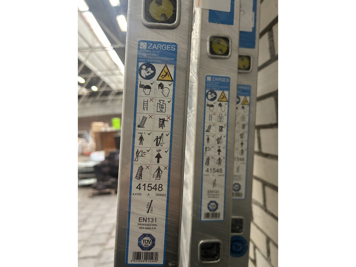 Merk: Zarges Product: Enkele ladder met gefelste sporten 8 sporten Specificaties: Showroom model.